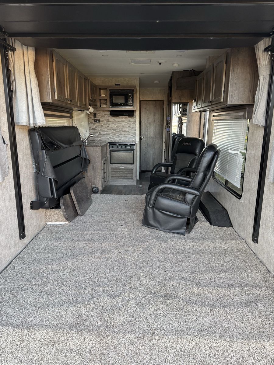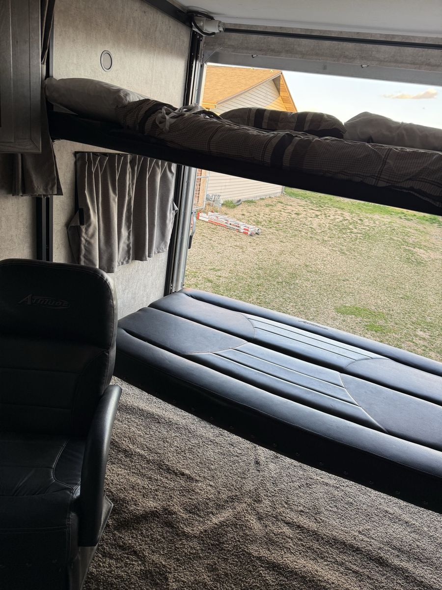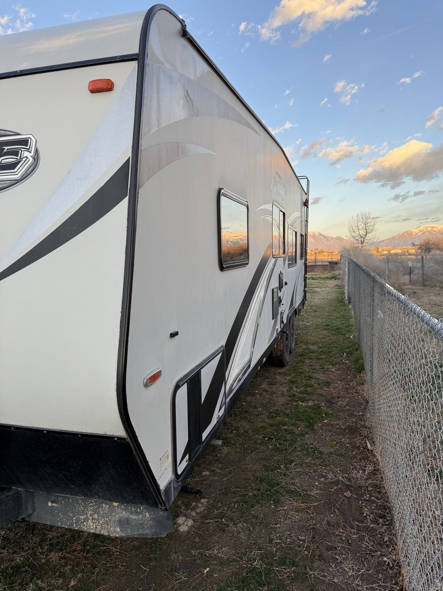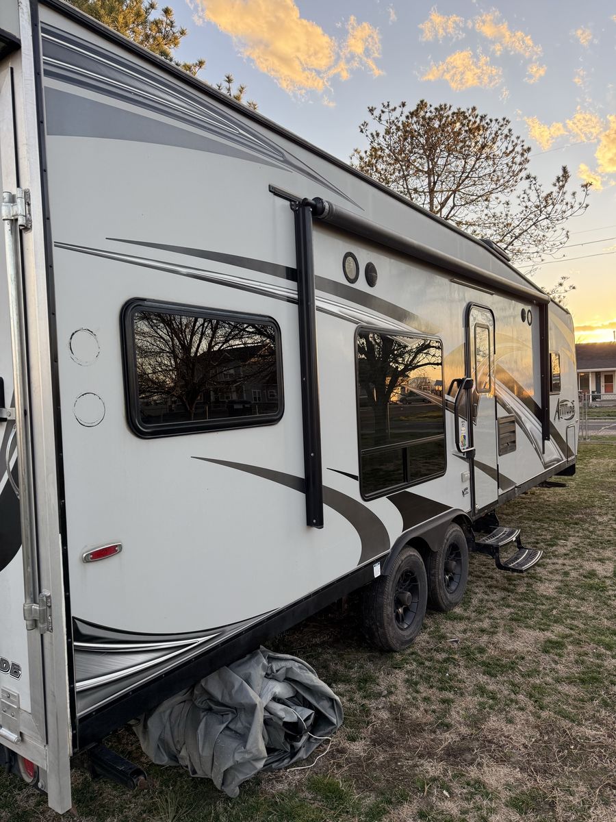 2016 eclipse attitude toy hauler. This is a very nice trailer. This is a very rare hard to find style trailer with open space and wide body that will fit a 4 seater rzr 1000 with plenty of roof clearance. This trailer has been very well cared for and any work that has been done Has been professionally installed and done the right way. very well maintained and everything works. The fridge and freezer work the generator fires right up with only 70 hrs. new batteries last spring. it has an electric jack on front. It has a cover that I just bought in the fall that comes with the trailer that is in excellent condition. It comes with the equalizer hitch. Tires are in excellent condition. It has a factory installed solar panel with inverter that keeps the batteries fresh all year long. Very nice when you’re camping. You hardly ever have to use the generator hence why the generator has so few hours. All Eletrical lights inside, outside, and connected to the truck work. It even has a back up camera on the back of the trailer. if you have a 2020 Chevrolet/GM or newer truck to pull it with it will fit the plug. It has a fuel station that works great. The roof is in great condition. I recently replaced two roof cap covers. inside it has a walk around queen bedroom upfront with a door that shuts for privacy. a top queen in the back and a lower queen in the back that will raise to a couch. the couch folds down to a bed and you can move the reclining chairs over for more people sleeping on the ground. It will sleep 6 to 7 comfortably. somebody is getting an extremely nice trailer. The only reason I am selling is I have moved to St. George and I’m not in a situation where I can bring it with me or I would not be selling it. Title is in hand and clean. See pictures for dimensions of garage.
