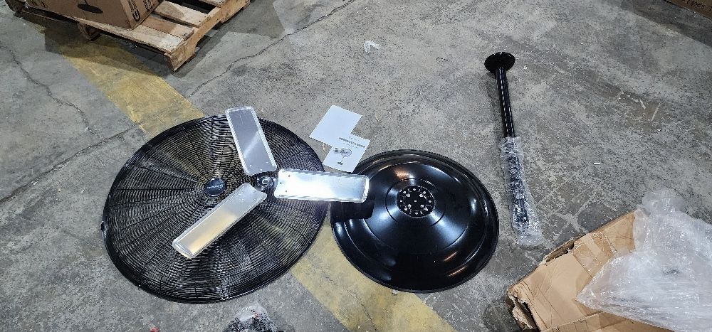 The VisionAir 30 in. heavy duty oscillating high velocity pedestal fan sets the bar high with its 30 in. industrial-grade aluminum fan blades. Driven by a powerful 1/3 HP direct drive motor, it delivers an incredible 7,497 CFM of airflow. With 3-speed settings and wide-angle oscillation, it ensures a refreshing breeze throughout the space. This fan's height is adjustable up to 76 in. making it adaptable to various settings. Crafted with all-metal construction and a rugged powder-coated finish, it's designed to withstand tough conditions. Supported by a sturdy steel base, it offers both stability and power. The 6 ft. grounded power cord adds convenience to its impressive performance. Assembly Required: No. CFM: 7558. Color Family: Black. Color/Finish: Black. Control Type: Remote Control. Cord Length (ft.): 6 ft. Decibel (Sound) Rating: Not Measured. Fan Diameter (in.): 26-30. Fan Features: Adjustable Height, Oscillating. Fan Type: Drum Fan. Housing Material: Steel. Indoor/Outdoor: Indoor/Outdoor. Input Wattage (watts): Not Measured. Mounting Type: Standalone. Number of Fan Speeds: 1-3 Speeds. Number of Fan Speeds: 3 Speeds. Plug Type: Parallel. Power Type: Plug-In. Product Weight (lb.): 44.75 lb. Voltage (volts): 120. Certifications and Listings: No Certifications or Listings. Fan diameter (in.): 30 in. Product Depth (in.): 25.75 in. Product Height (in.): 78 in. Product Width (in.): 32 in. Fan Diameter (in.): 26-30. Fan diameter (in.): 30 in. Power Type: Plug-In. CFM: 7558. Indoor/Outdoor: Indoor/Outdoor. Cord Length (ft.): 6 ft. Fan Features: Oscillating. Fan Features: Adjustable Height.