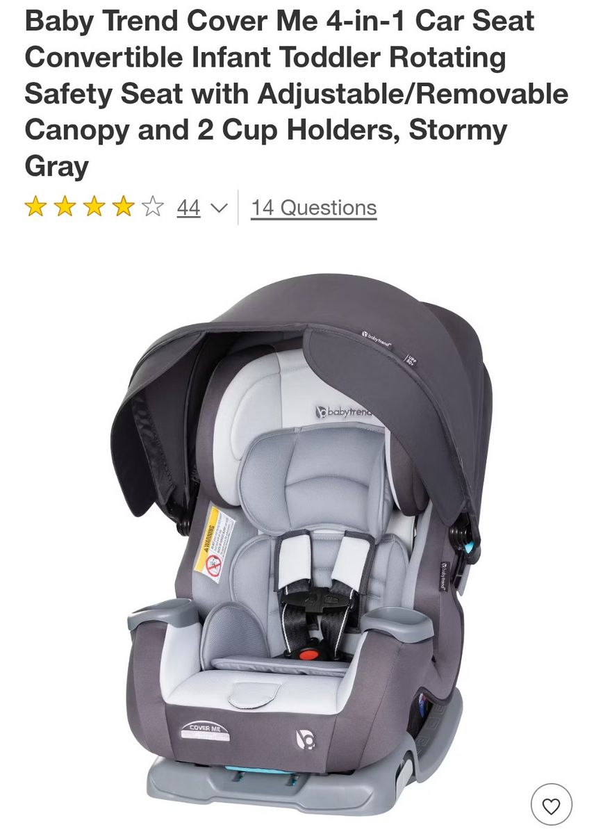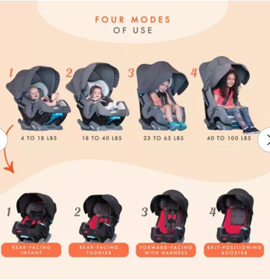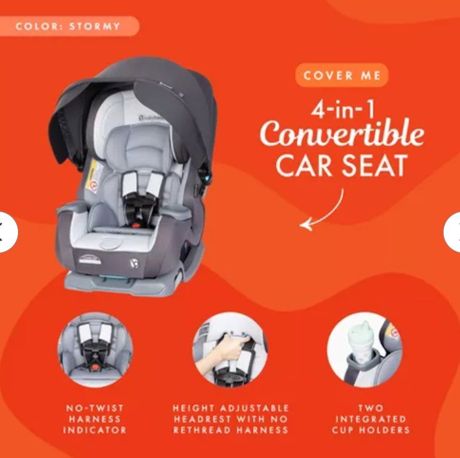 VenmoBrand New in the box Baby Trend Cover Me 4-in-1 Car Seat Convertible for 4lb to 100lb with Adjustable/Removable Canopy and 2 Cup Holders in Stormy Gray color. Details are in the pictures. Asking $150. Text if interested 801-903-8337