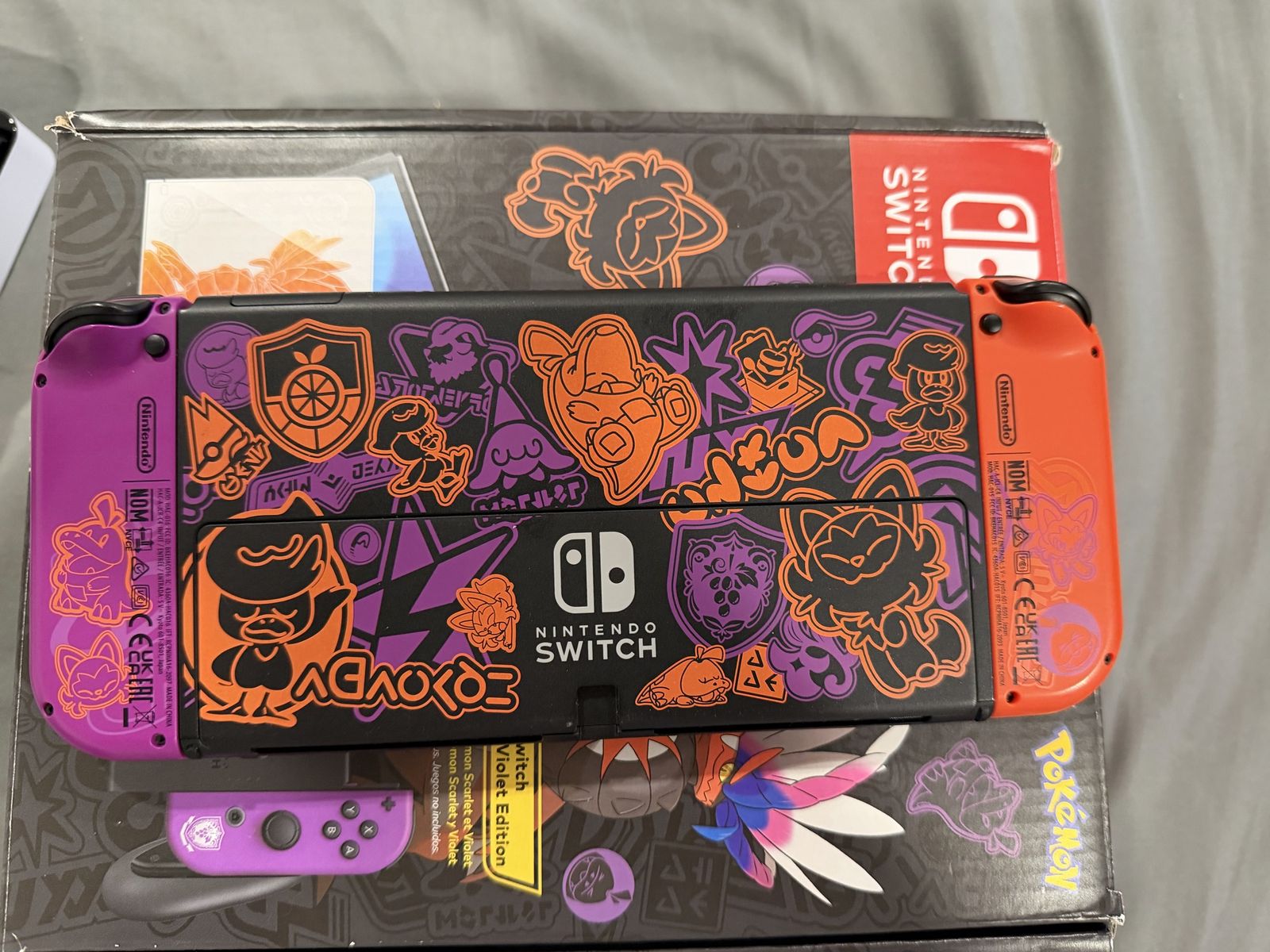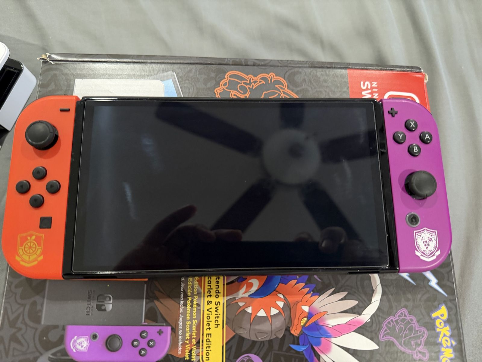 VenmoLike new Very lightly used no scratches Nintendo switch oled it is the Pokémon scarlet and violet edition. It comes with the original box as well as all the original accessories and cables. Will throw in a 400gb switch sd card. No games included. Pickup in Eagle Mountain but I work in Salt Lake City so can meet in between too. Price is firm