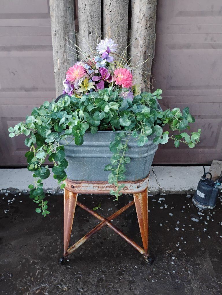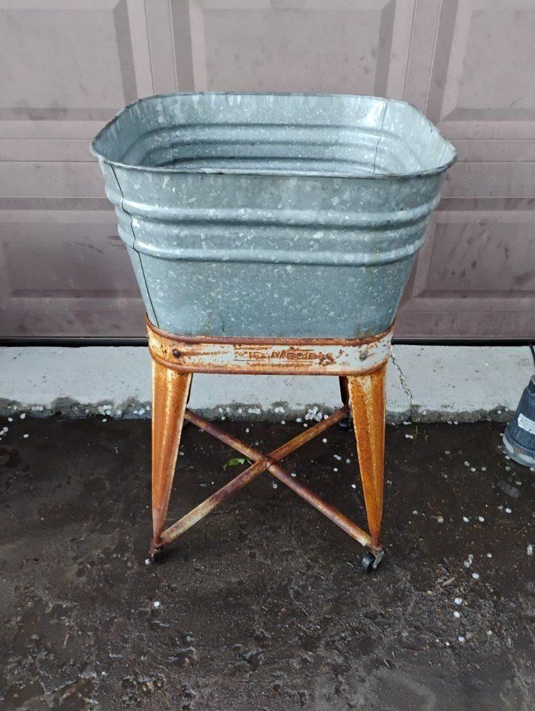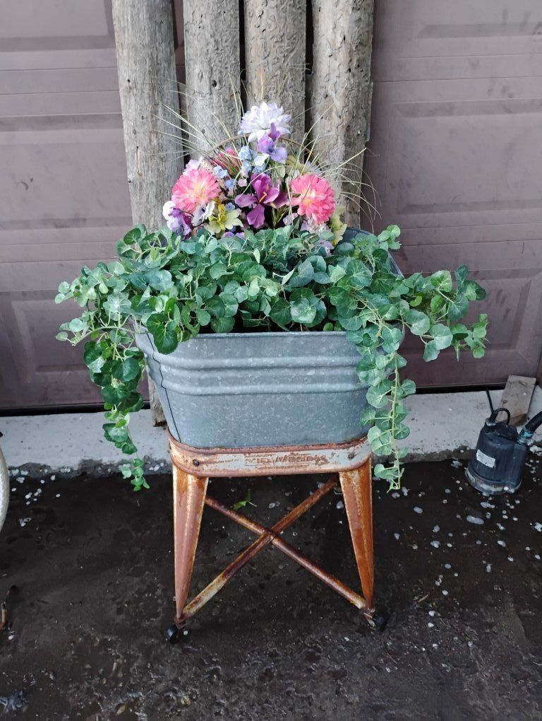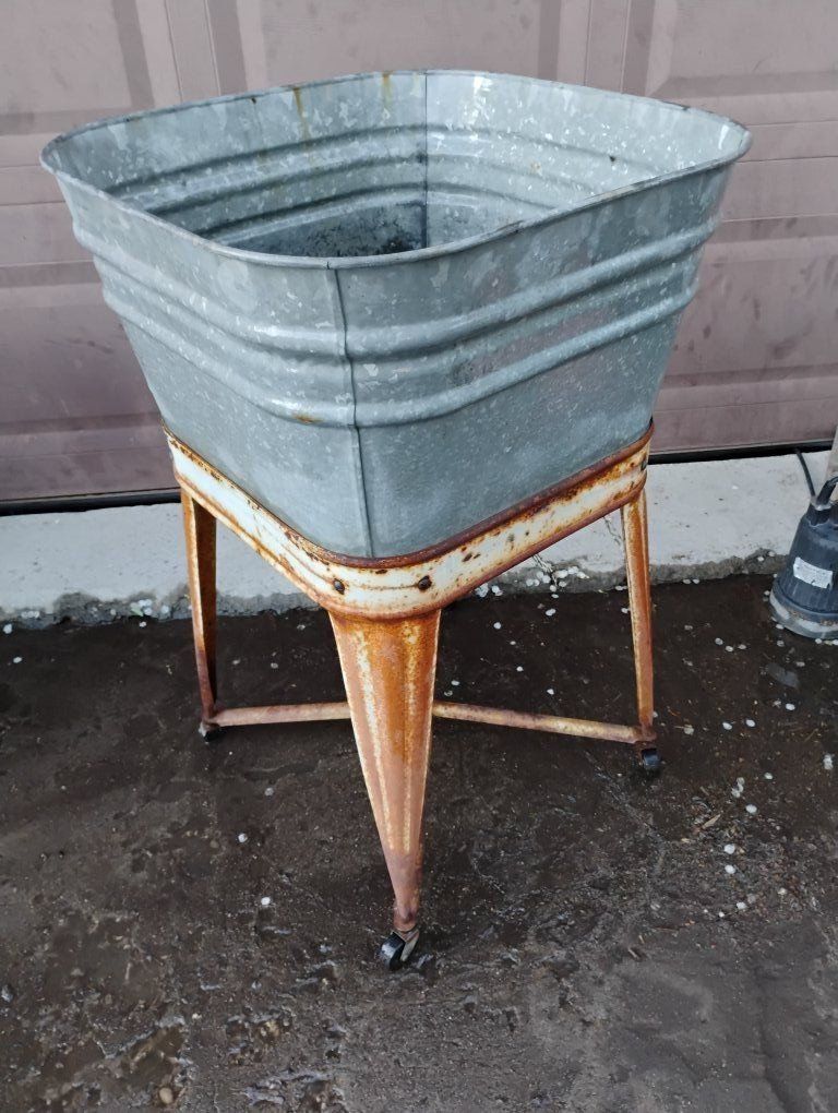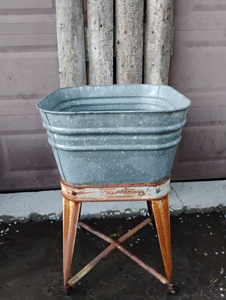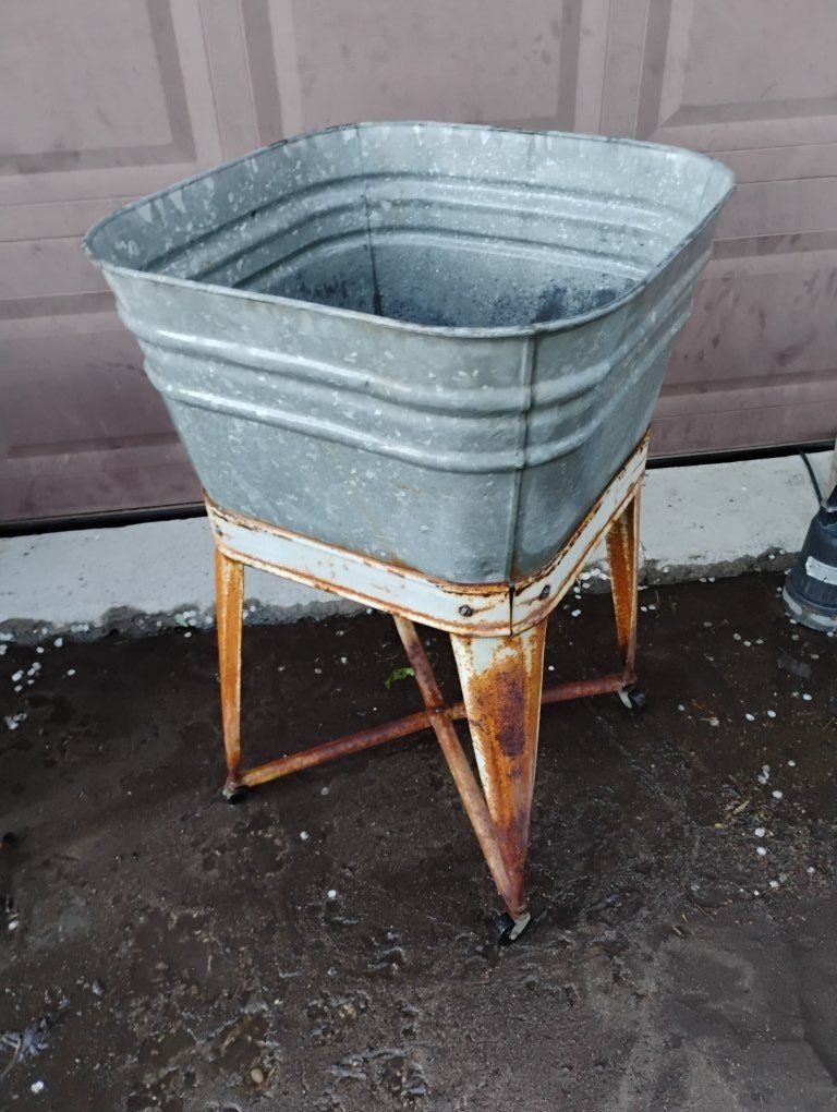 VenmoGreat condition, no dents. Great patina. Has drain. Makes a beautiful planter or drink holder, just fill with ice. Made By MidWest, In Kellogg Iowa. Artificial foliage for display available if wanted.