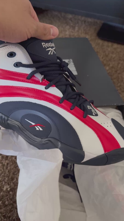 VenmoThese are Reebok's retro Shaquille O'Neal signature basketball shoes from 2020, done up in a red, white, and blue colorway. Mid-top leather and nubuck upper, Hexalite cushioning. Tried on twice, no real wear. Uppers clean, no creasing, clean bottoms. Original box included.