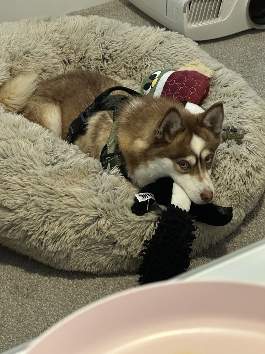 ZelleAbsolutely beautiful 1.5-year-old male Pomsky with striking blue eyes and a rare rustic brown/cream coat. He is the perfect 16–20 lb companion—well-balanced, calm, and incredibly well-trained.