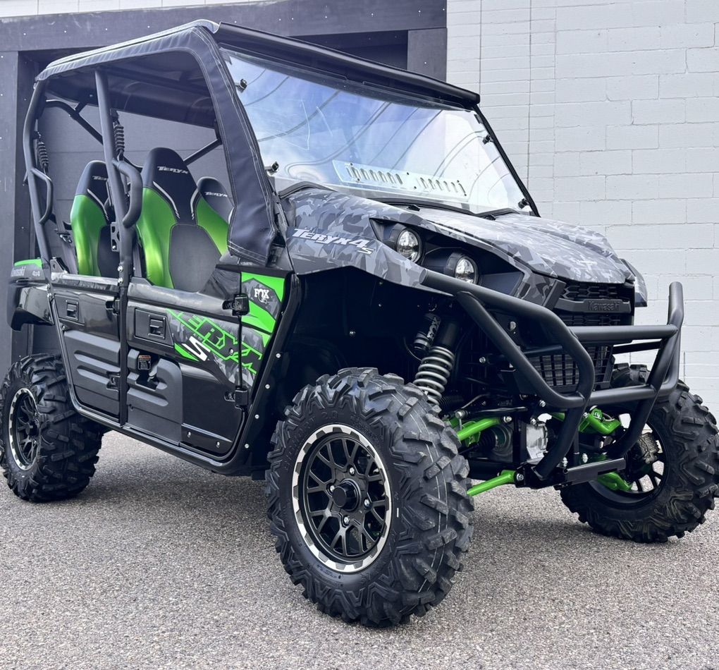 Happy Easter…2023 Kawasaki TERYX 4S with only 242 miles and extras. Factory OEM Roof, Fox float suspension, windshield, cold weather soft enclosure kit and heater system.