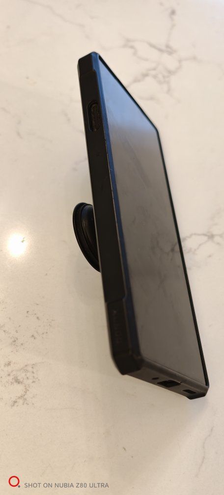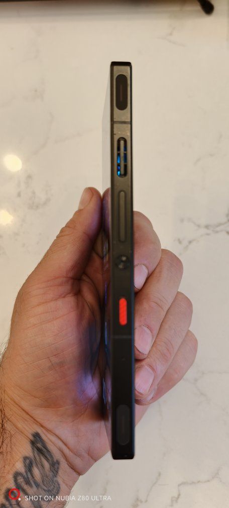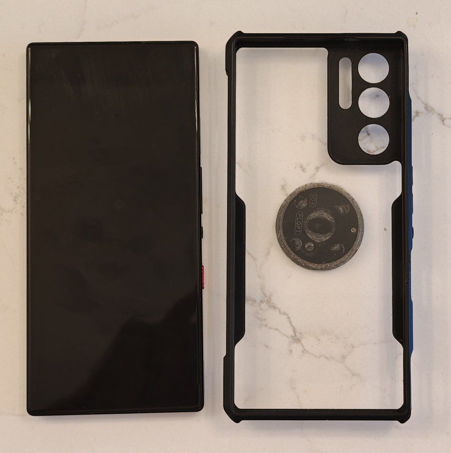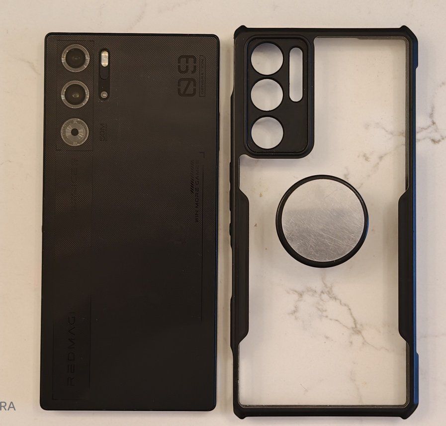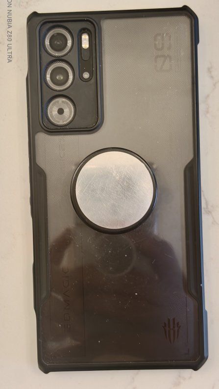 GooglePayZTE NUBIA REDMAGIC 9PRO Black with a Black/transparent case and pop socket.
