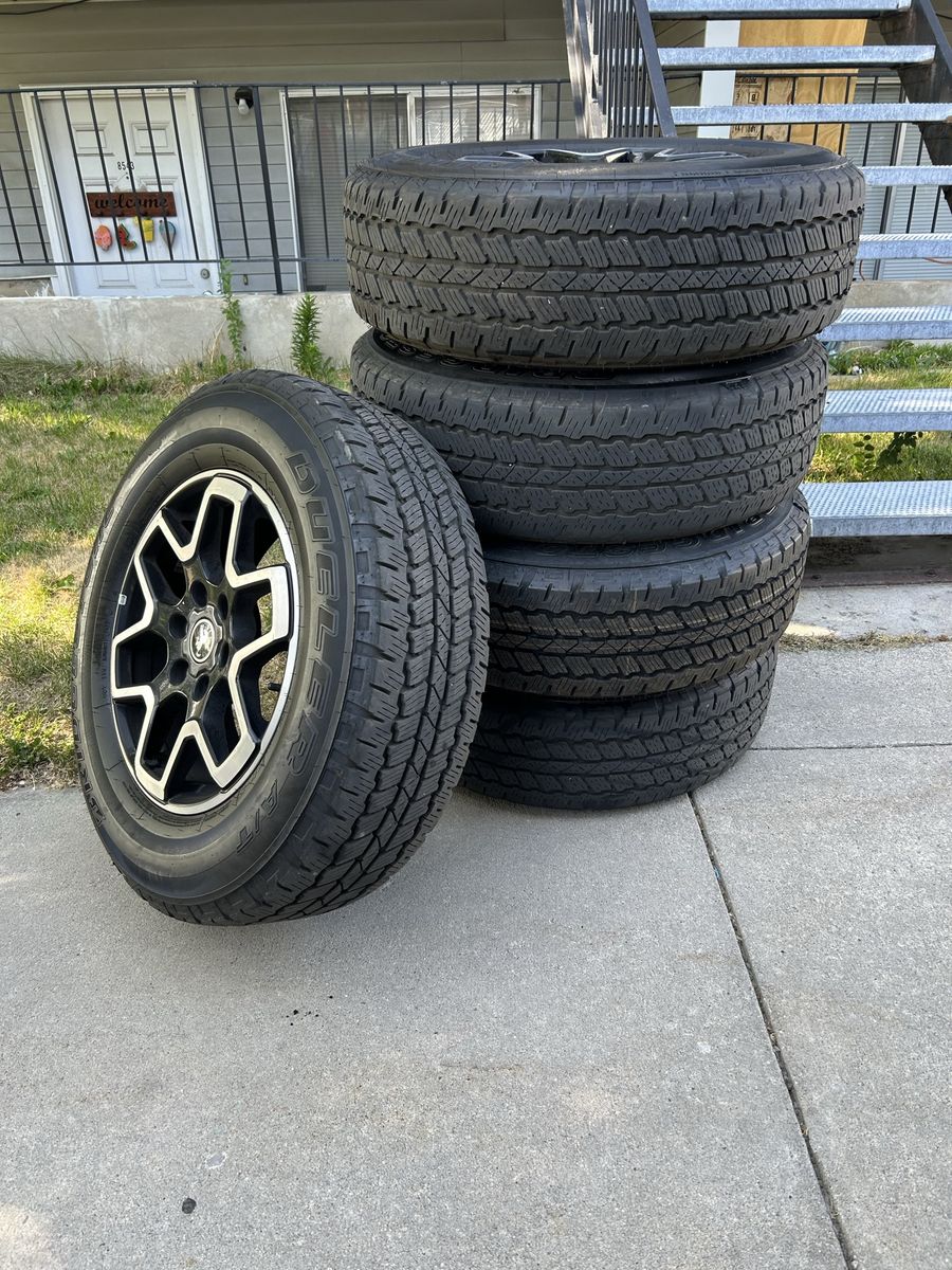 PayPalFord Bronco Tires And Rims Bridgestone Dueller A/T 225/70R18 113T M+S 6x5.5 Lug pattern Set of 5 Less than 1000miles on them