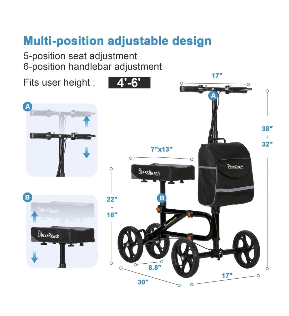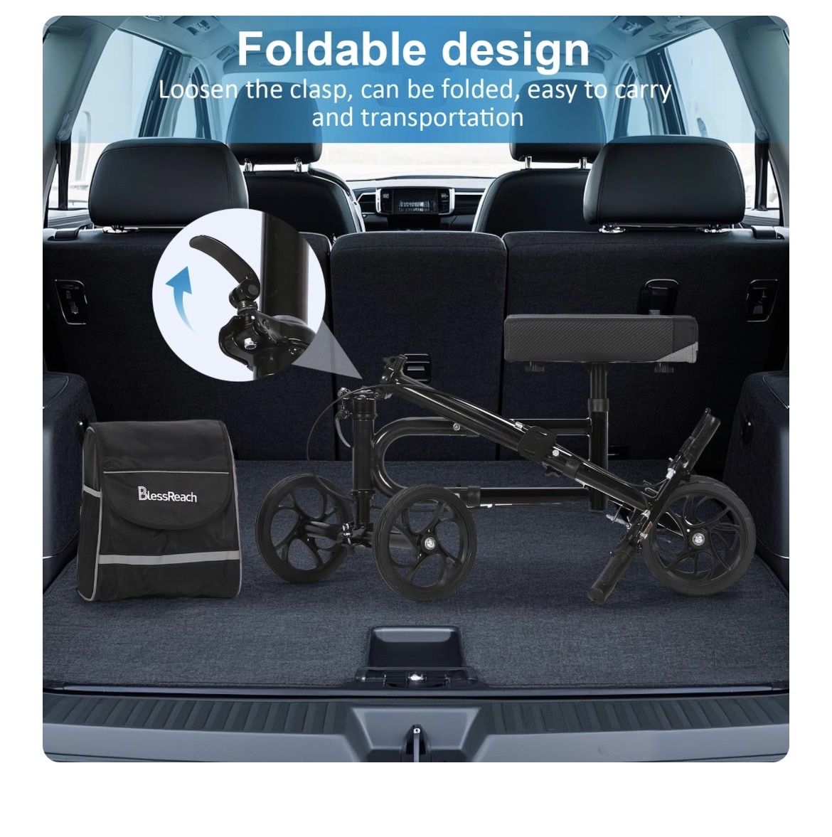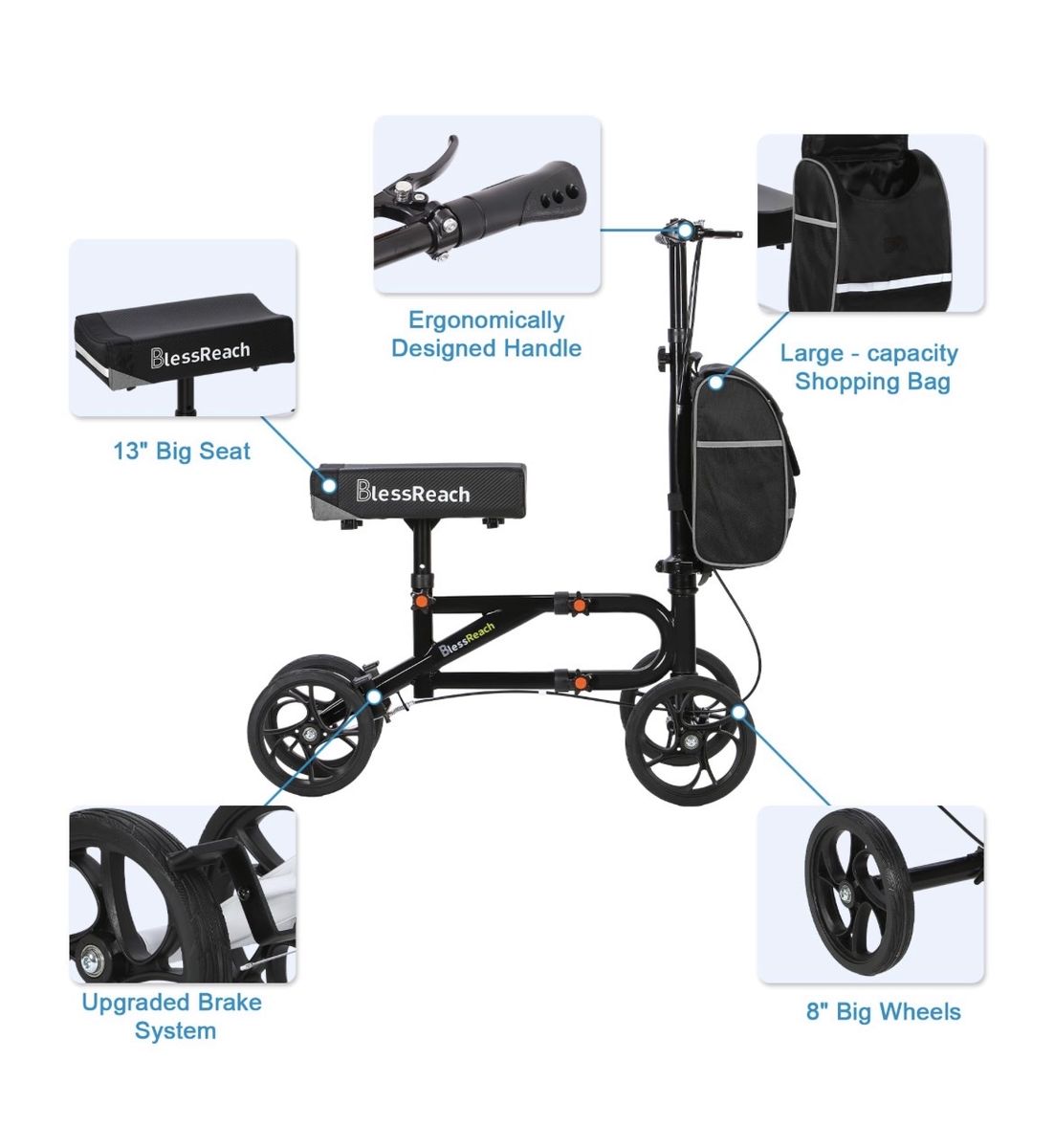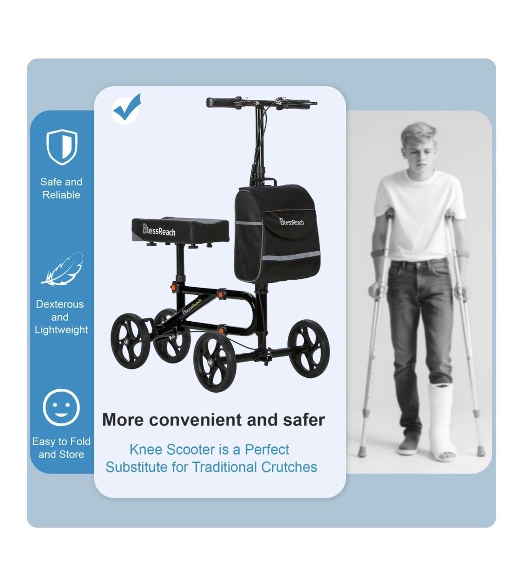 VenmoEconomy Knee Scooter Steerable Knee Walker for Foot Injuries Compact Crutch Alternative with Dual Braking System (Black) Brand New in Original Packaging Easy Assembly