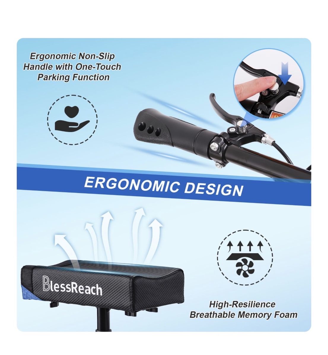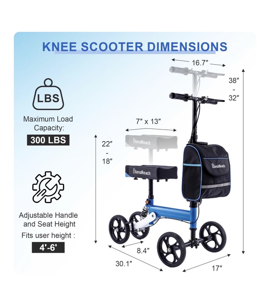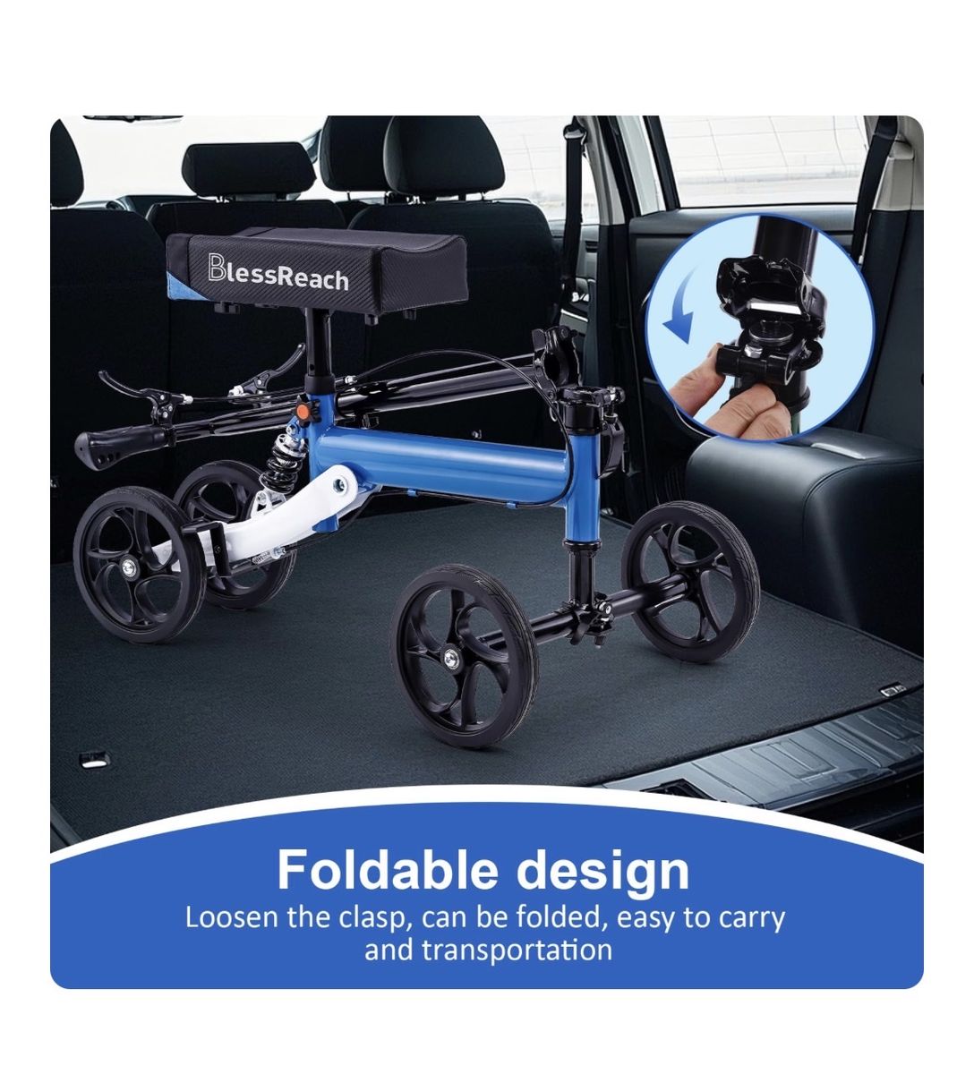 VenmoBlessReach Steerable Knee Walker Deluxe Medical Scooter for Foot Injuries Adult Compact Crutches (WB-2105 Blue)... Brand New in Original Packaging With Shock Absorber
