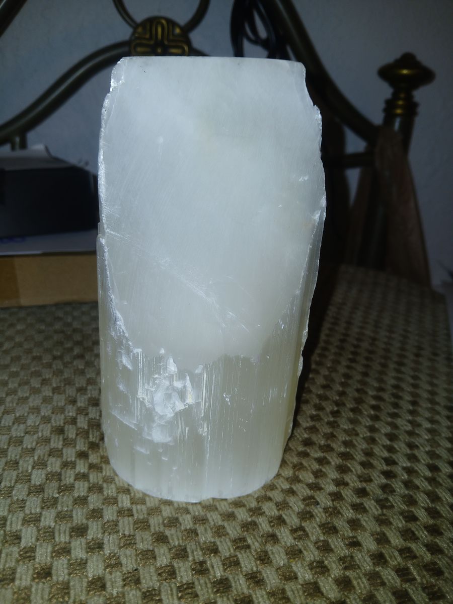 PayPalSelenite crystal tower with center on bottom hollowed to fit a bulb light which i have the bulb and cord as well, I'm asking $20 OBO