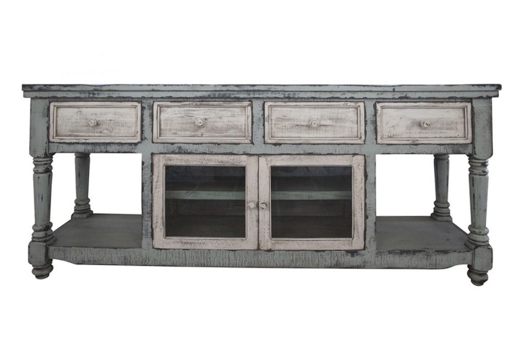 ApplePayBeautiful solid wood TV Stand in Sky Blue Finish. With 4 white drawers and 2 white doors. High quality wood furniture DIMENSIONS:70 x 19 x 34-3/4 Weight: 142 pounds Comes assembled