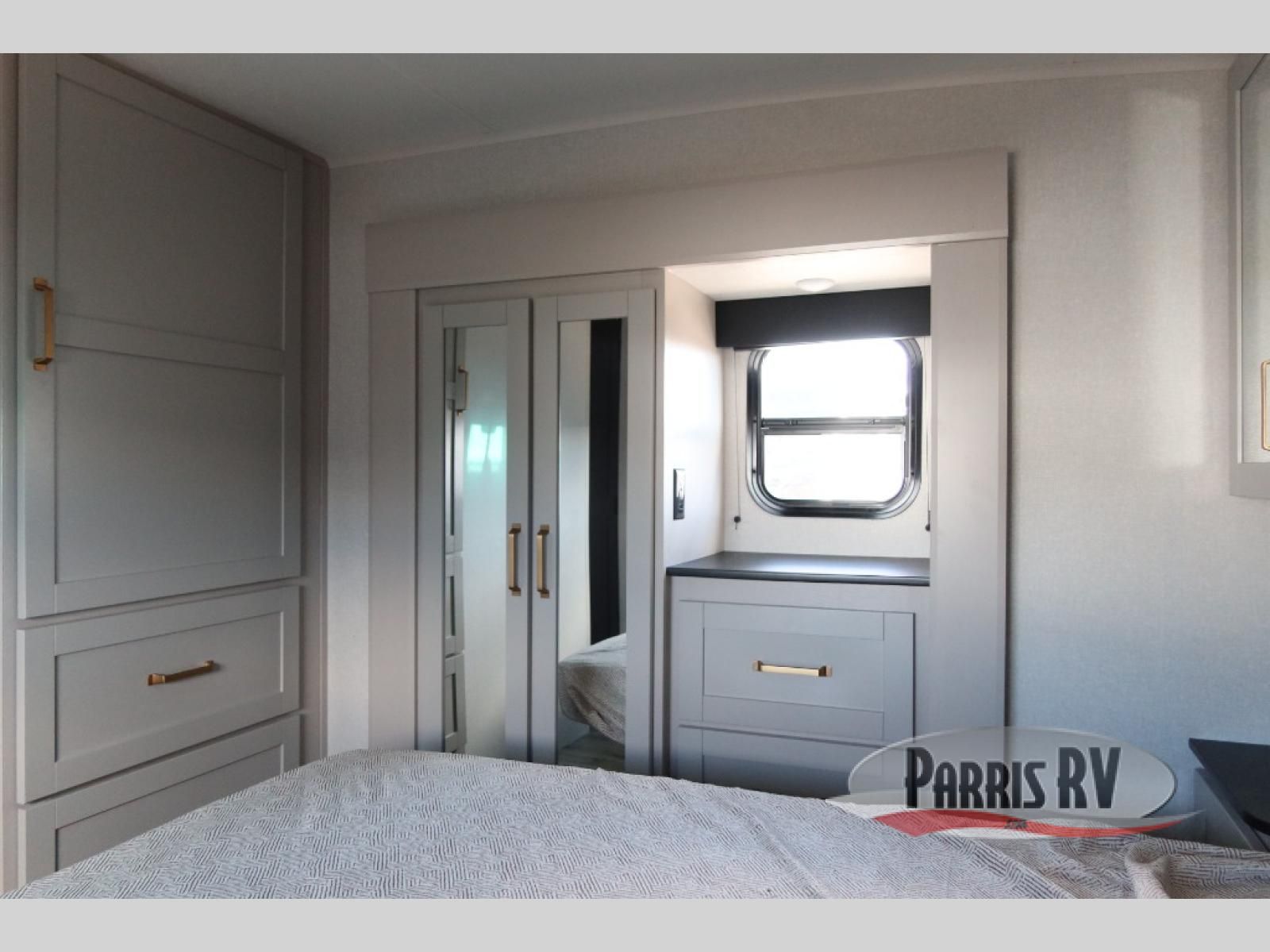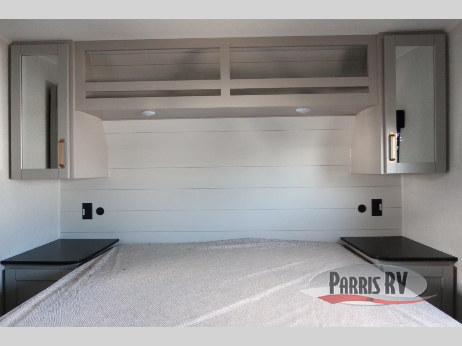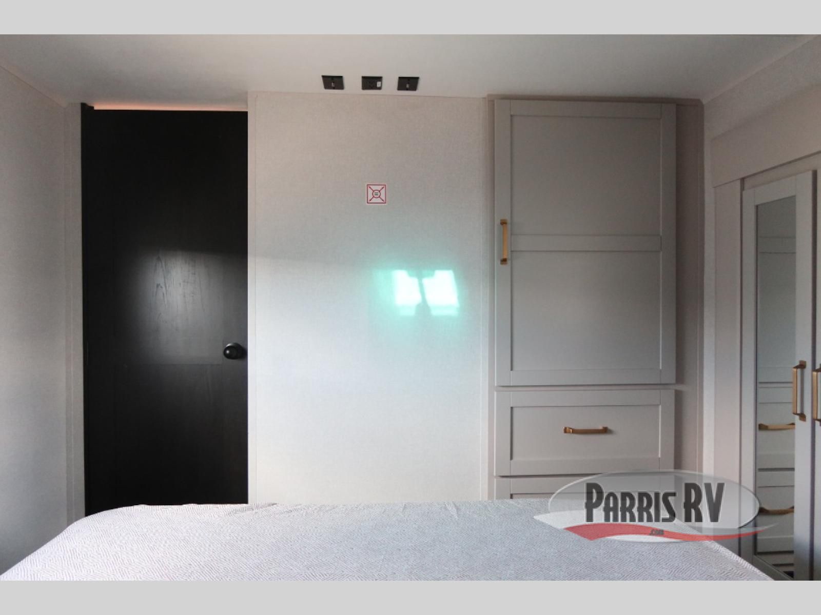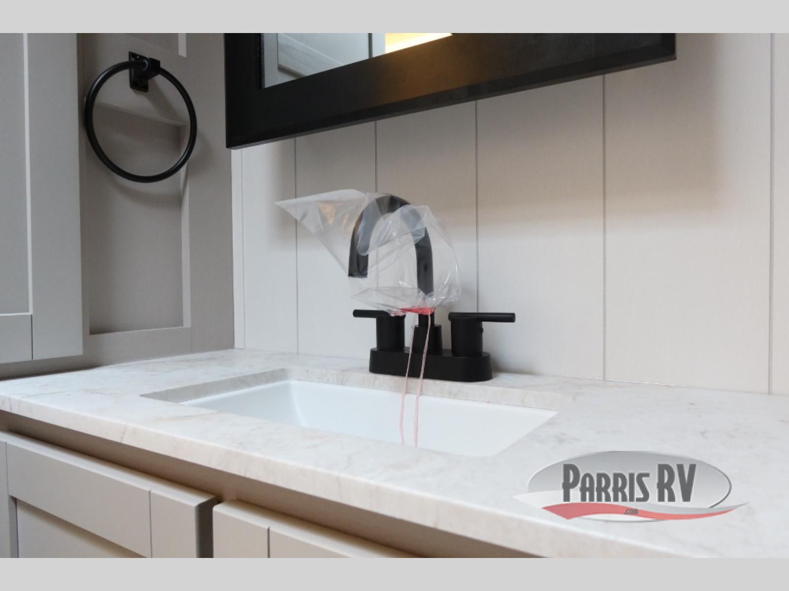 The fifth wheel you were waiting for! The spacious rear kitchen is equipped with a three-burner cooktop, microwave, booth dinette, 12V refrigerator, and sink, providing ample space for meal preparation. Overhead cabinets and a pantry provide ample storage for cookware, dishes, and other essential kitchen items. The living area features a trifold sofa, perfect for relaxation and entertainment. The full bathroom's thoughtful design ensures that everyone has their own space, and the front bedroom is a retreat from the world, featuring a plush queen bed, a spacious wardrobe, and a closet.