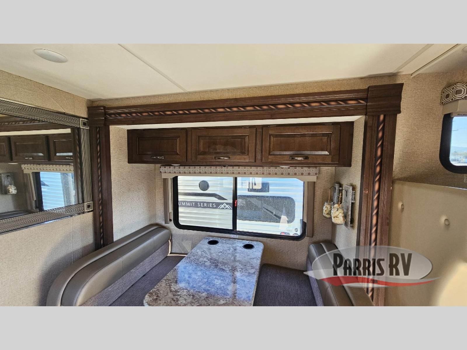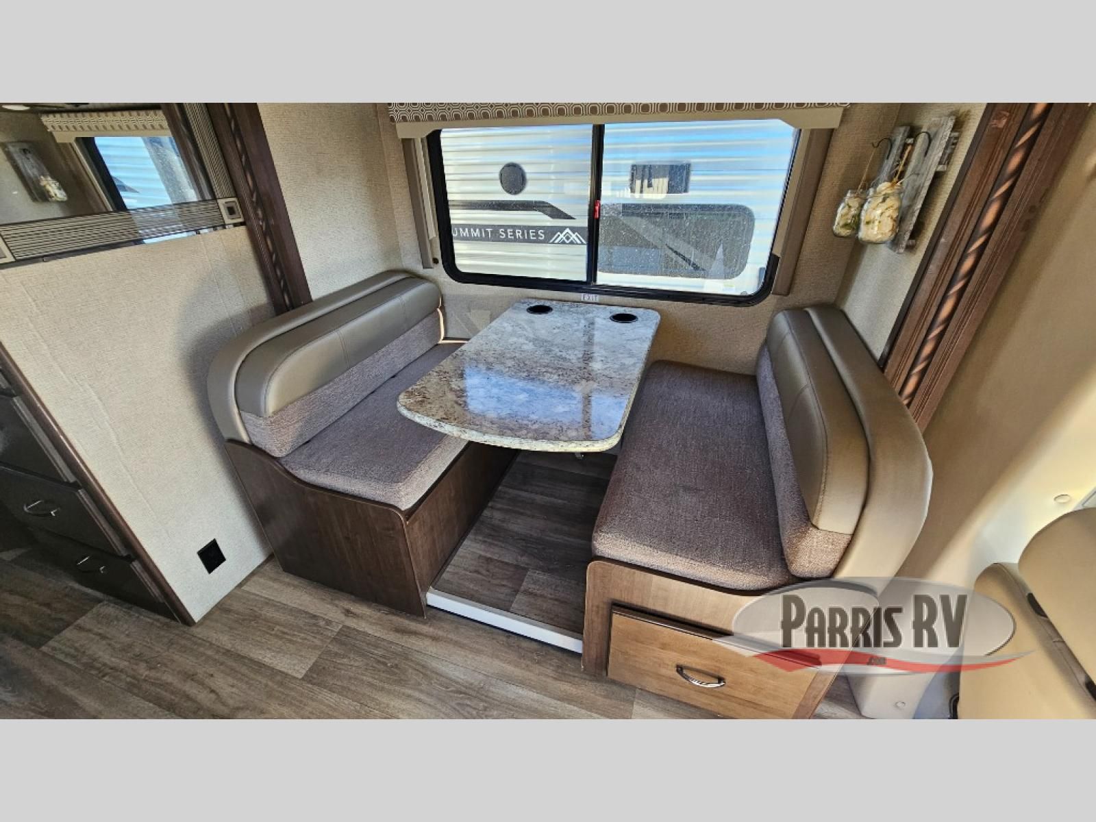 There is a slide out Dream Dinette and closet along the roadside wall for dining, playing games, or even to be used as extra sleeping space.