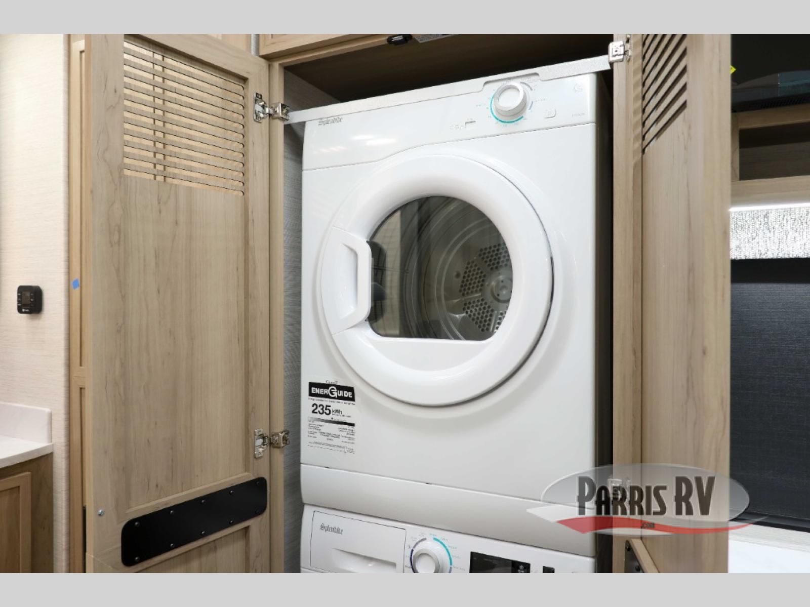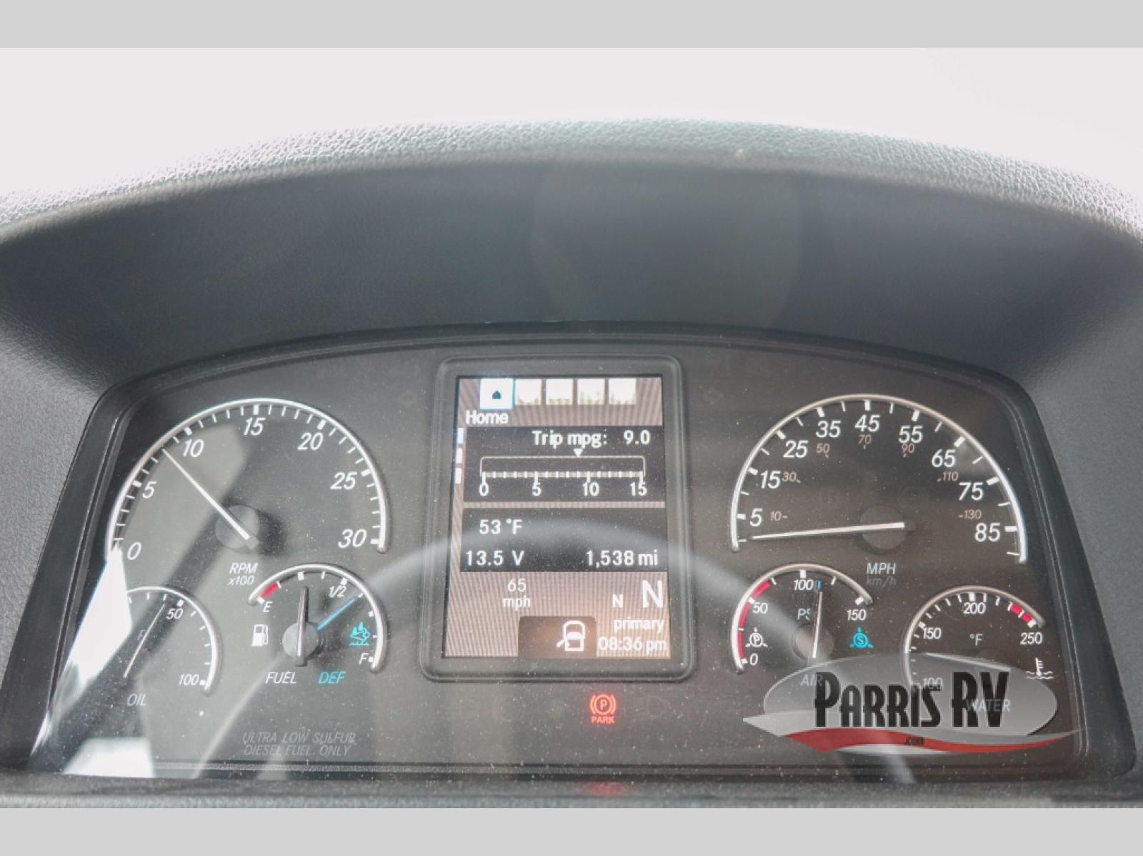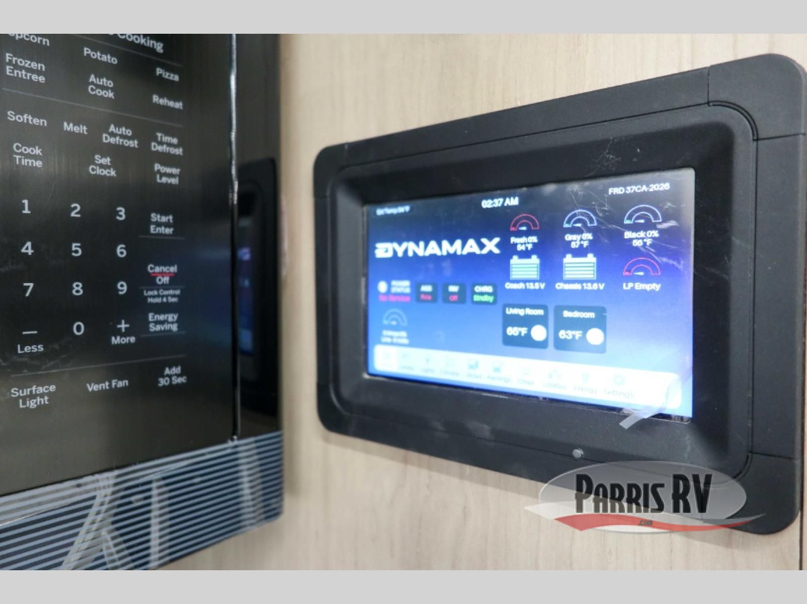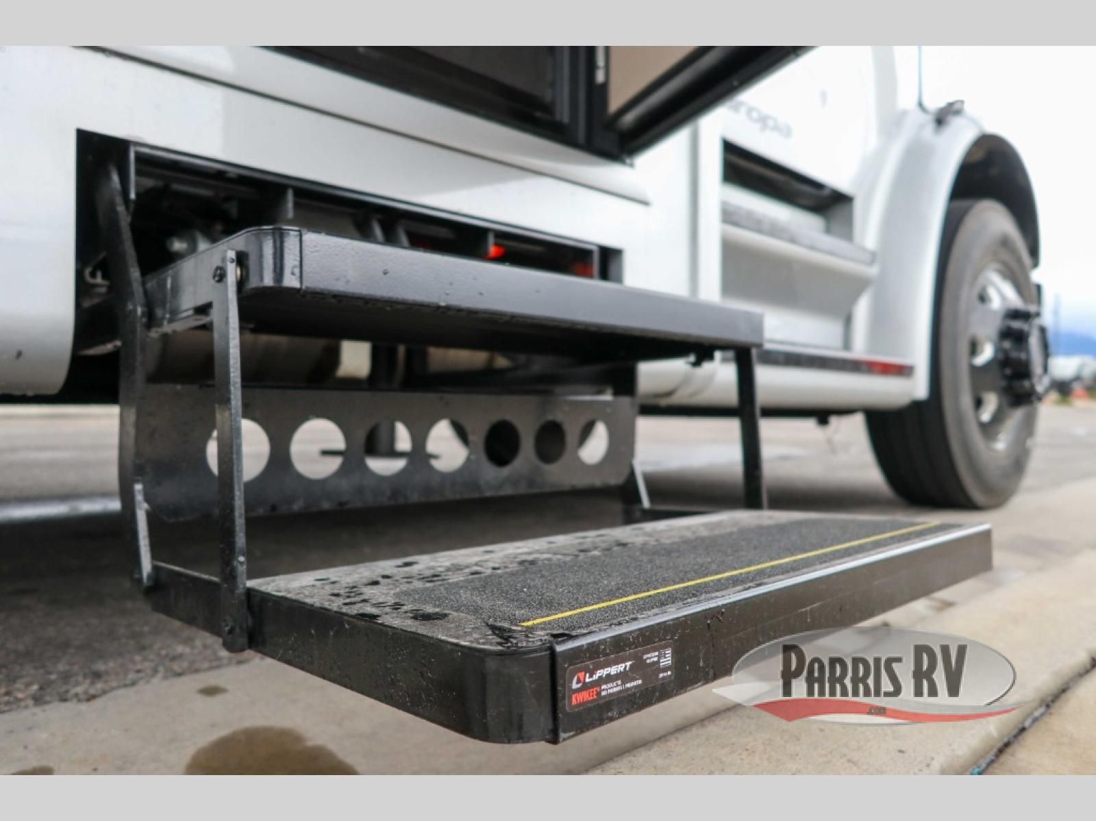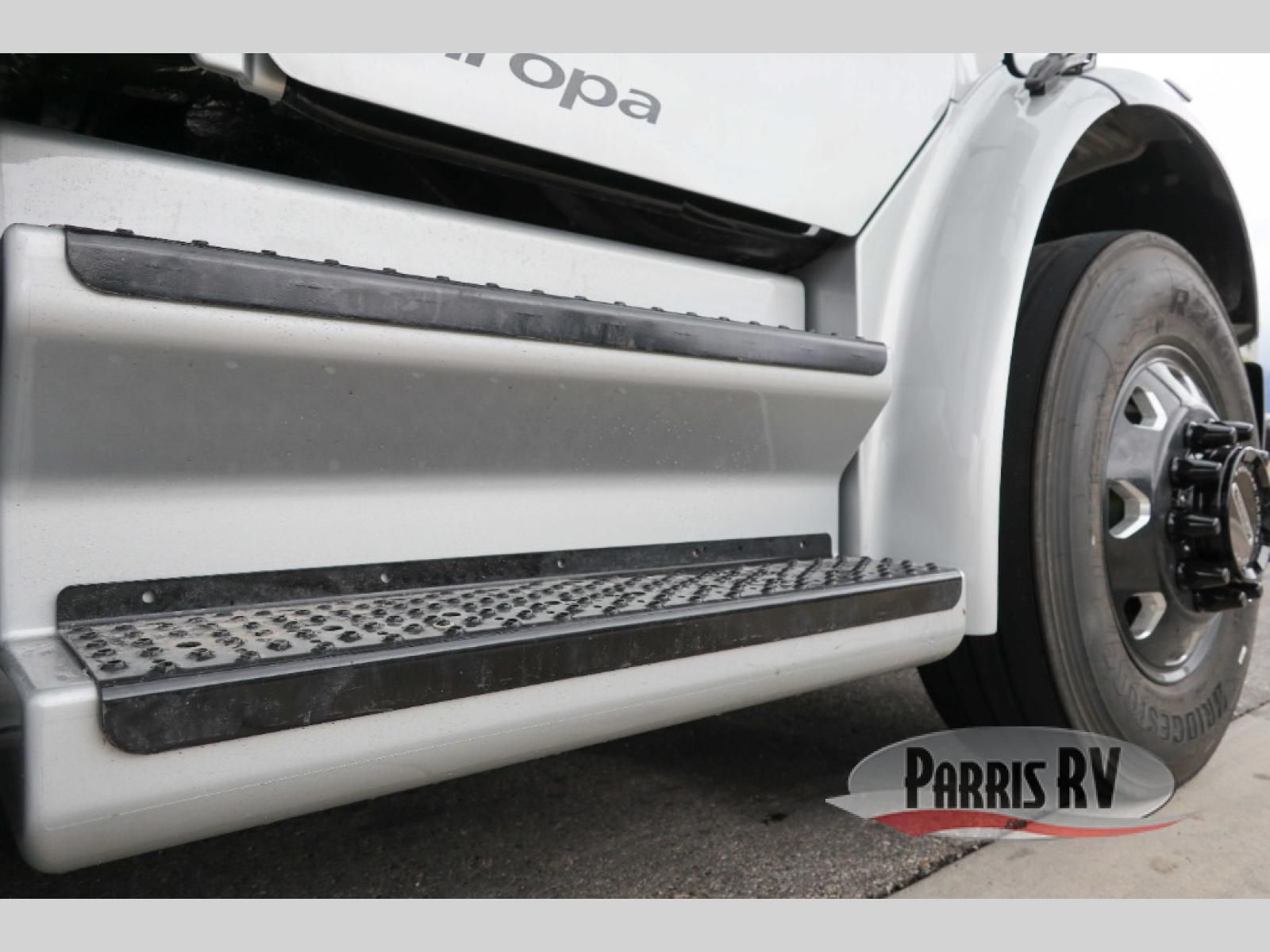 The Dynamax Europa S Super C motorhome is built for confident travel and elevated comfort. This motorhome delivers smooth, controlled performance with its Allison 3000 MH six-speed automatic transmission and advanced air suspension system. A fully laminated, aluminum-framed construction provides exceptional strength, insulation, and long-term durability, while the custom full-body paint gives it a striking, premium presence on the road. Inside, residential-inspired living shines with refined finishes and modern technology, all supported by robust utilities including solar power and an 8kW Onan diesel generator, making this coach as ready for off-grid adventures as it is for luxury travel.