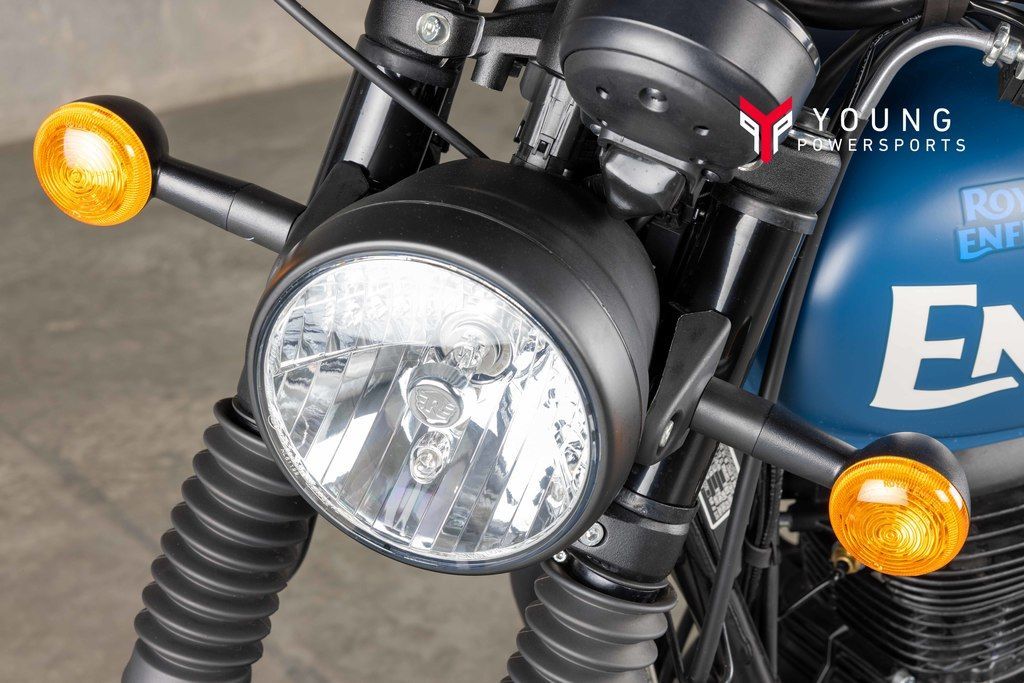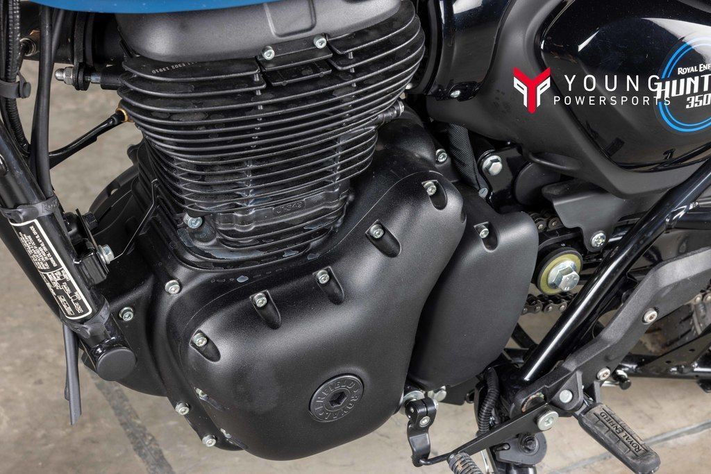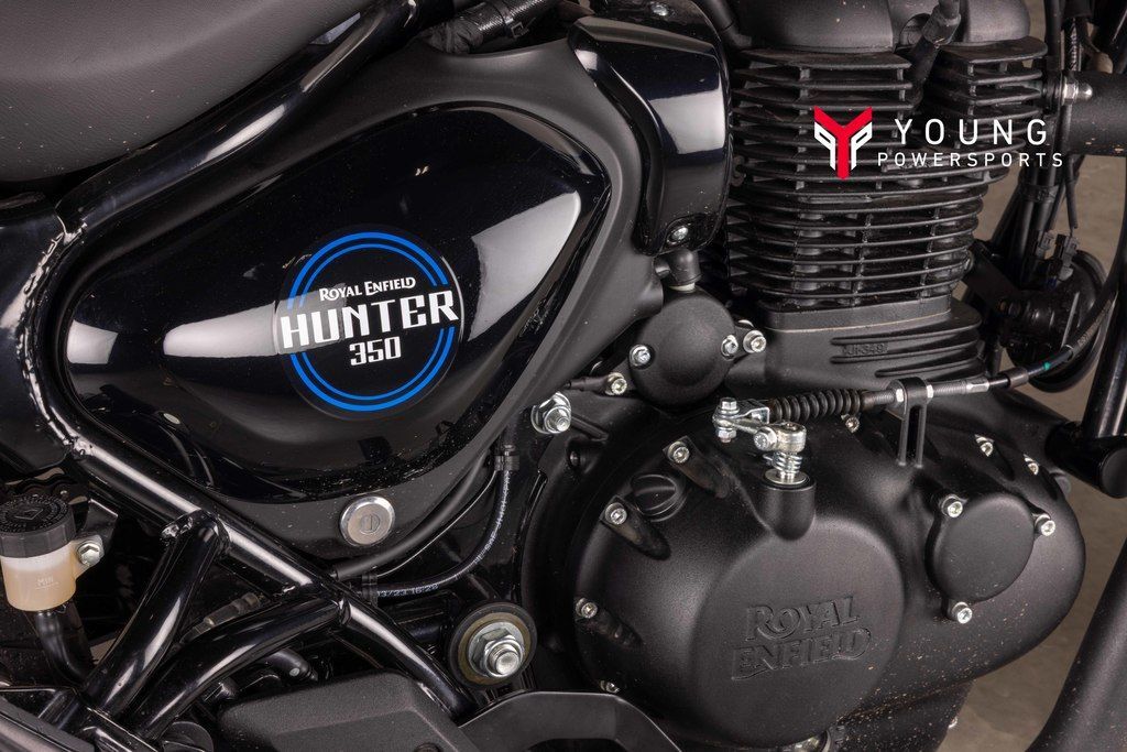 AGILITY WITHOUT FRAGILITYAt the heart of the Hunter beats a fuel-injected, long-stroke 350cc J-engine that delivers a smoother ride, higher RPM and dollops of torque. Paired with a steady downtube spine frame and grounded suspension, the Hunter 350 gives the right amount of power and precision for revving up the city streets.