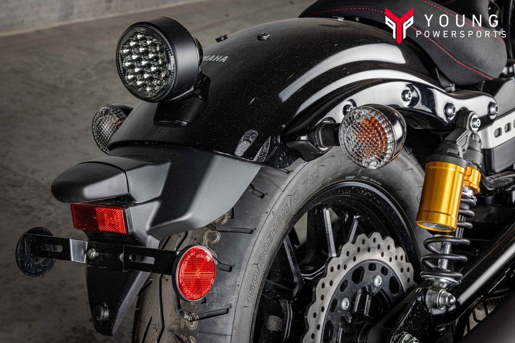 Components such as the sculpted 3.4 gallon teardrop fuel tank, muscular blacked-out V-twin engine, distinctive 12-spoke front and rear wheels, belt drive, and steel fenders all combine to bring a hotrod Bobber style to Yamaha's Sport Heritage lineup.