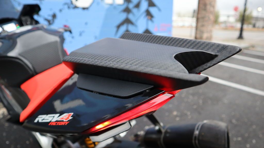 A triple LED headlight unit with perimeter daytime running lights and cornering light function helps improve visibility while giving the RSV4 Factory a bold, unmistakable front-end look.