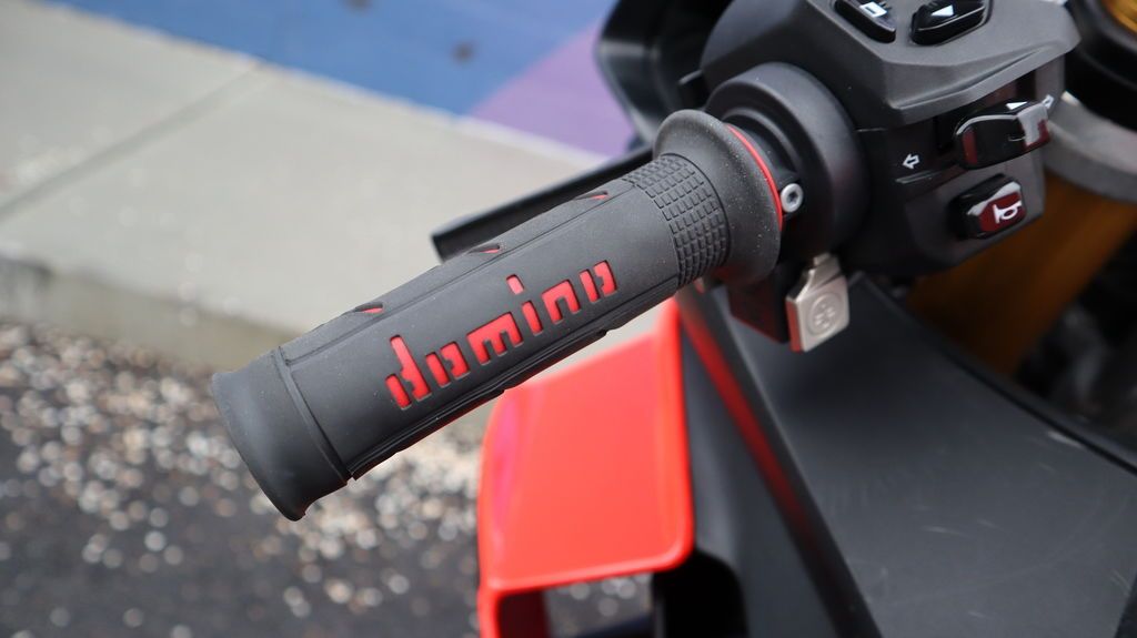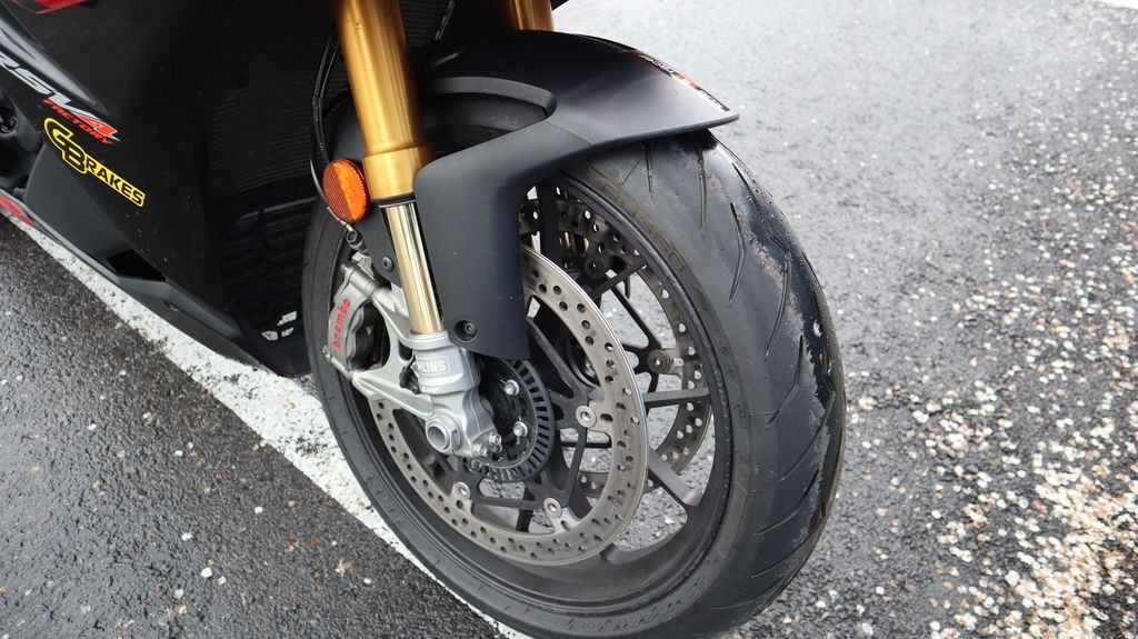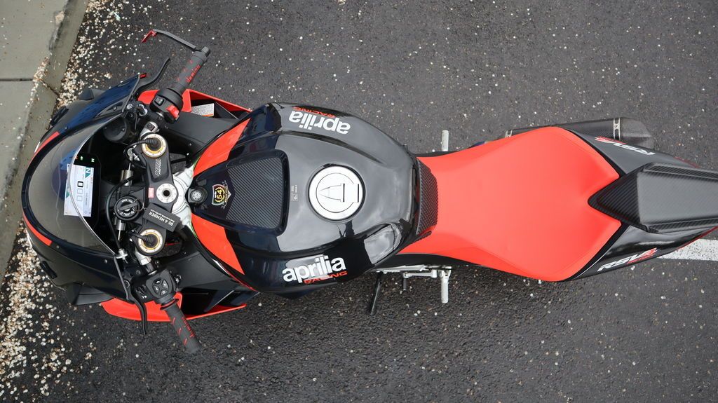 A lighter swingarm with a reinforced lower brace, inspired by the Aprilia RS-GP MotoGP machine, helps reduce mass and improve rear-end stability during hard acceleration. The result is a chassis that feels sharp, planted, and confidence-inspiring.