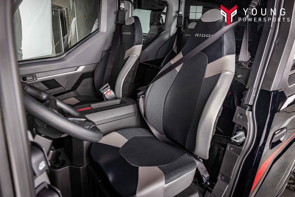 RIDGE® XR CREW HVAC side x sides come equipped for year-round comfort. A factory-standard full cab with heating, ventilation, and air conditioning (HVAC) makes a comfortable escape from the heat in summer, the cold in winter, and everything in between.