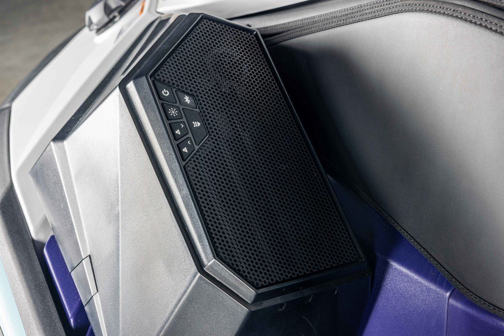 The JetBlaster Limited accessory package includes a footwell audio kit, stern-mounted storage, and a Yamaha-branded mooring cover.