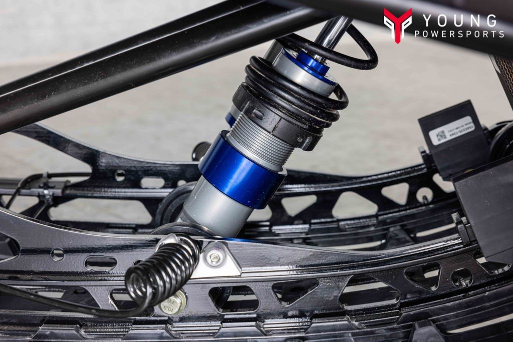 Choose from two shock options. Ultra-premium Walker Evans Velocity Shocks are the best of the best in various mountain conditions. They feature remote reservoirs for increased oil capacity to ensure all-day performance and durability, along with compression adjusters to dial in the ride. The Walker Evans Lightweight Monotube Shocks are standard and feature a simple and durable one-piece design.
