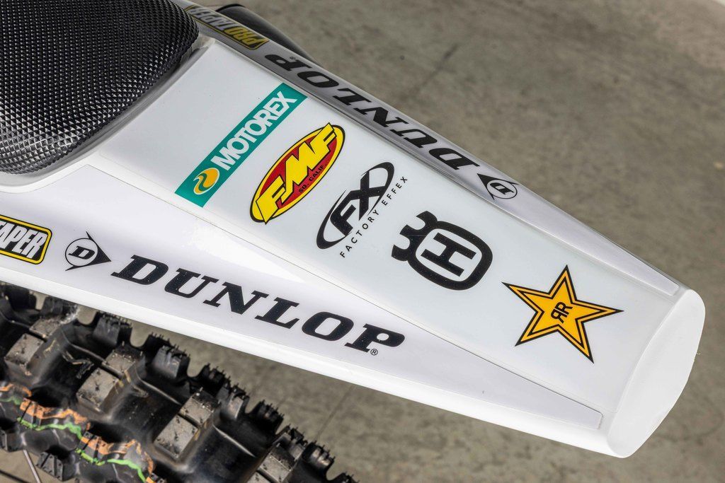 Slim-profile bodywork ensures unrestricted movement on the motorcycle, while the high-grip GUTS Racing seat cover holds riders firmly in place under hard acceleration. The ergonomic bodywork features the latest Rockstar Energy Husqvarna Factory Racing graphics, which are applied using in-mold technology for a high-quality, long-lasting finish.