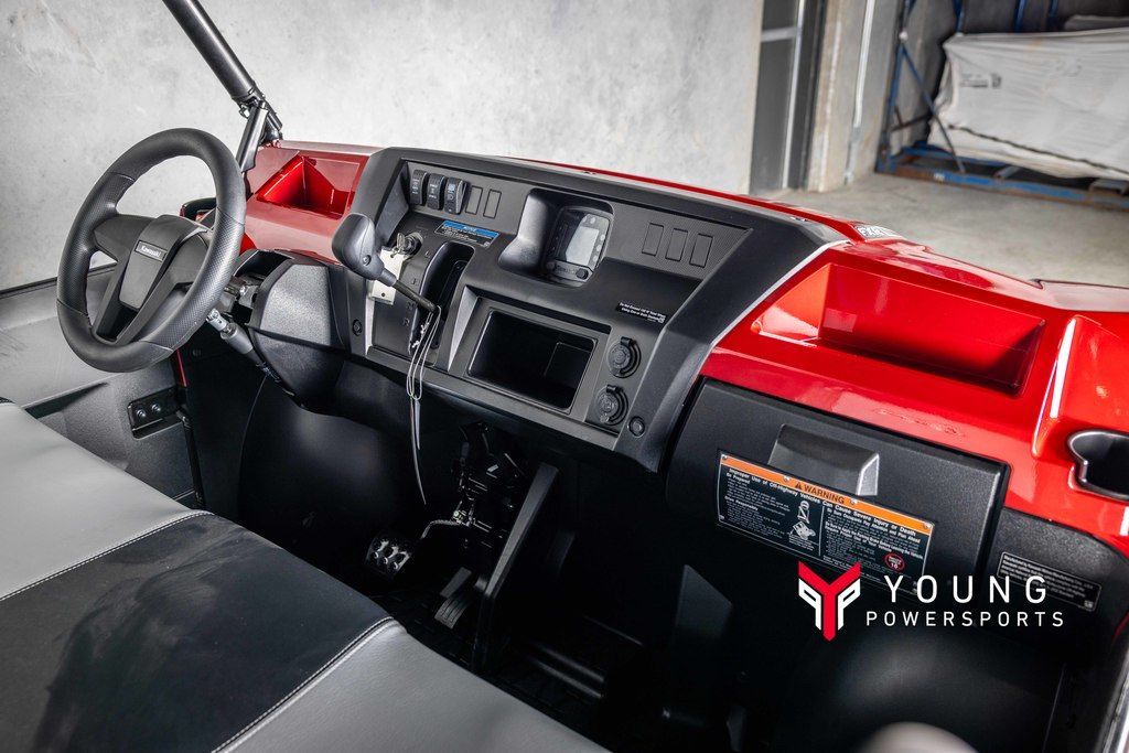 Enjoy a smooth comfortable ride with long-travel front and rear double wishbone suspension, increased ground clearance, speed-sensitive Electric Power Steering (EPS), and a spacious 3-passenger cabin with supportive contoured bench seating.
