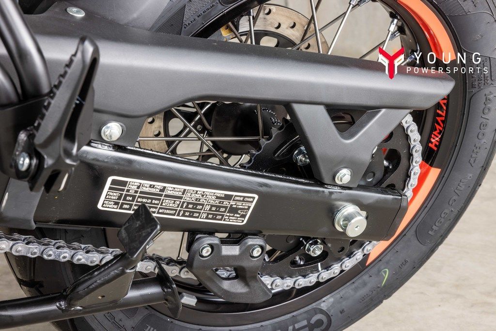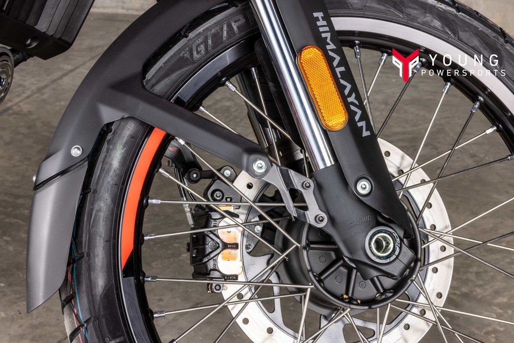 FITS LIKE AN ADVENTURE GLOVEThe best chassis is the one you don’t notice. From the versatile 21” front 17” rear wheel combination to the large enduro footpegs and wide handlebars, the Himalayan works with you in all situations on or off-road. The slim seat and tank let you get your feet firmly on the ground when you stop, while increased ground clearance and longer travel suspension let you choose the roughest tracks.