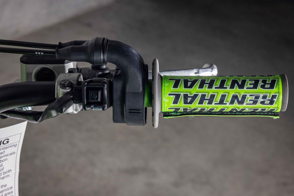 All KX™450 motorcycle advanced controls are streamlined for rider convenience. Kawasaki TRaction Control (KTRC), Power Mode Selection, and Launch Control Mode are available at the push of a button. These features enable riders to quickly adjust power delivery and traction for riding conditions and preference. The KX450 offers superior features designed to inspire confidence.