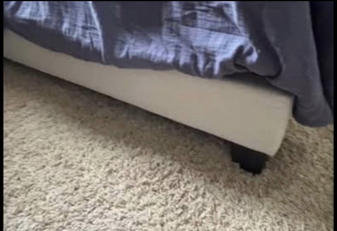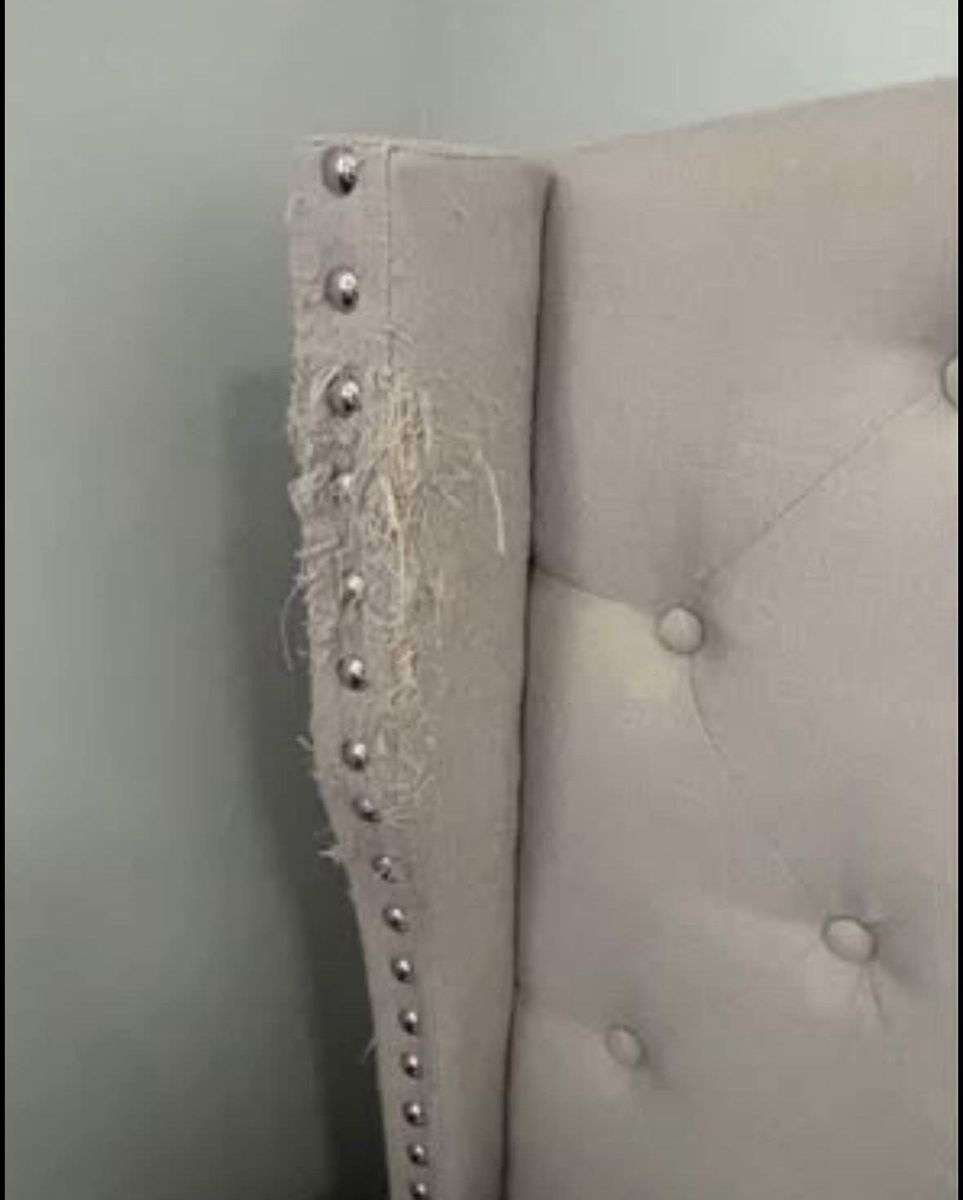 Queen size gray tufted bed frame. Cat scratched sides of headboard. No mattress included. Pickup only