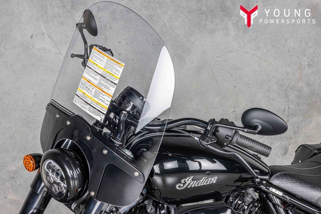 Premium blacked out or chrome finishes, fork covers, wire wheels, and large headlight nacelle, and iconic Indian Motorcycle script badging on the tank, commanding attention at every corner.