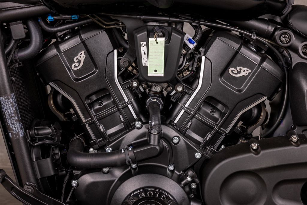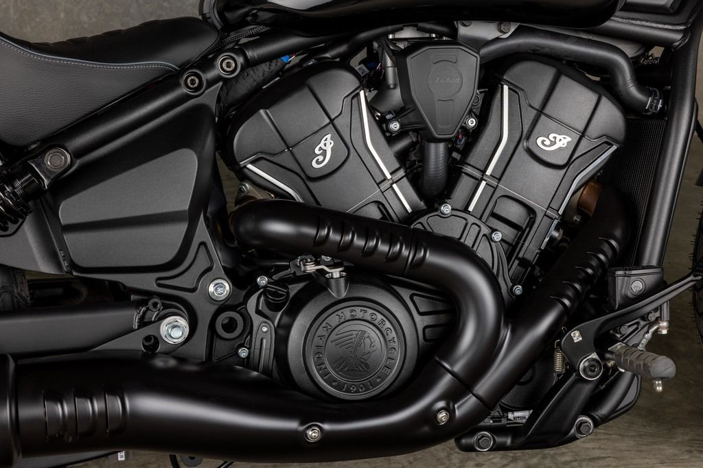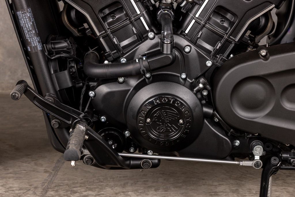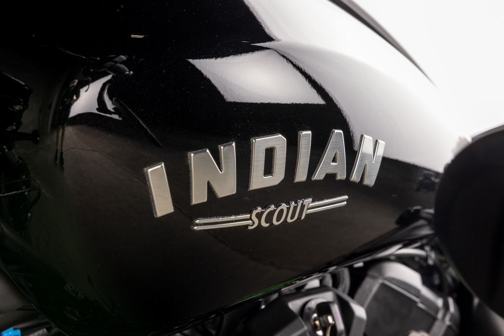 The contour lines on the rear fender seamlessly connect with the modern and dynamic Scout gas tank, creating a unified and premium blacked out aesthetic.