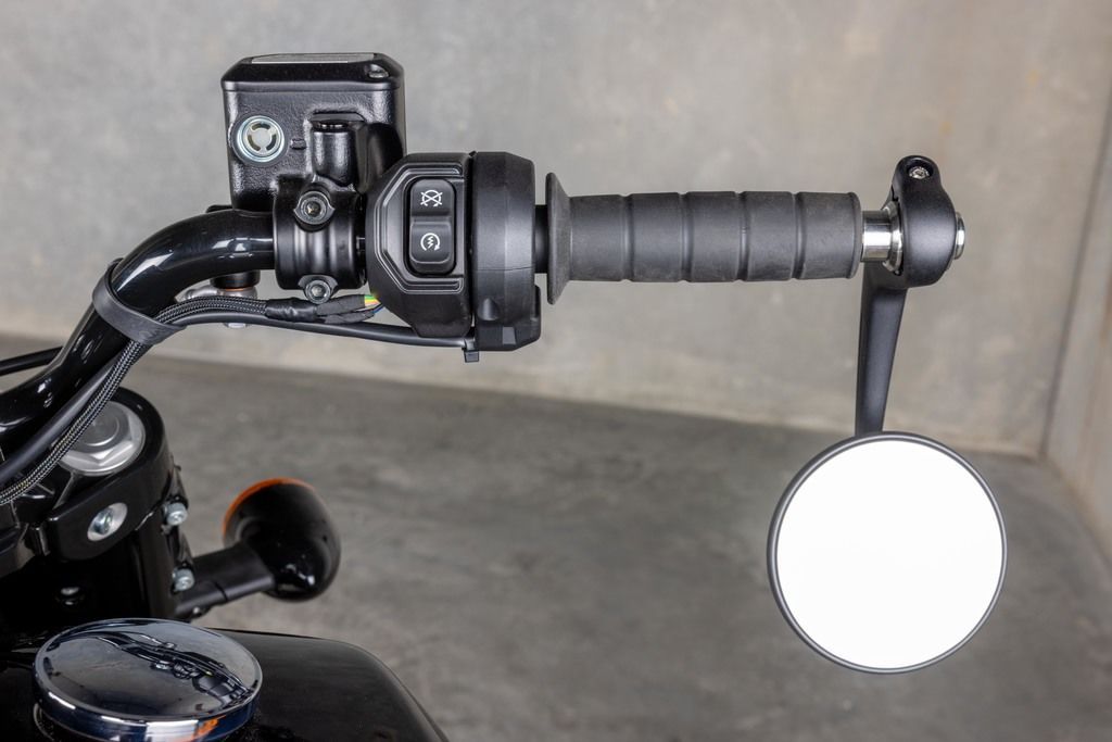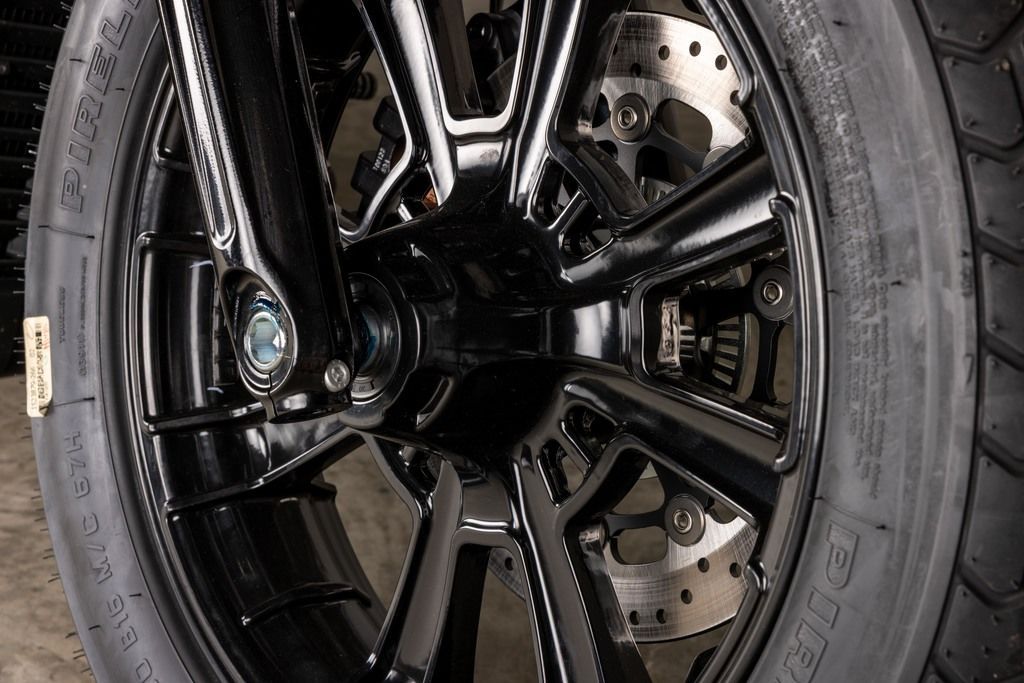 Blacked out front to back with chopped bobber fenders and Headlight Nacelle, it leans hard into a mean bobber vibe.