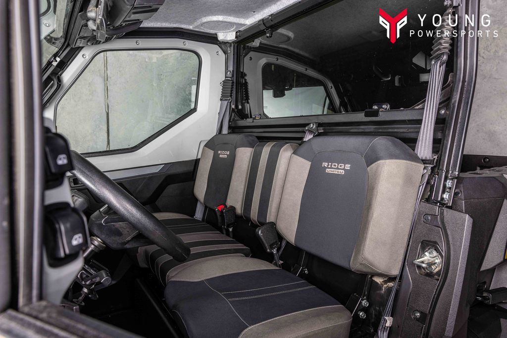 Class-leading comfort starts with a highly composed chassis and spacious accommodations. A factory cab with advanced HVAC system (on select models) complements premium interior features with automotive-inspired fit and finish. Long-travel suspension and high ground clearance, as well as a high-capacity, flat cargo bed gives RIDGE® the versatility to power through technical recreational riding and hard utility work with greater comfort. On-the-fly electrically selectable 4WD and rear differential locks enhance ride comfort, while a high-tech cabin further promotes rider connection and ride quality.