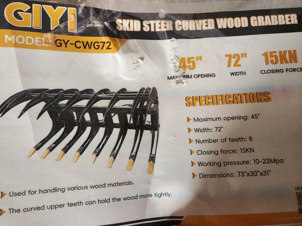Venmounused 72 inch hydraulic grapple bucket. hooks up to the front of skid steer. call or text with questions can help with delivery.