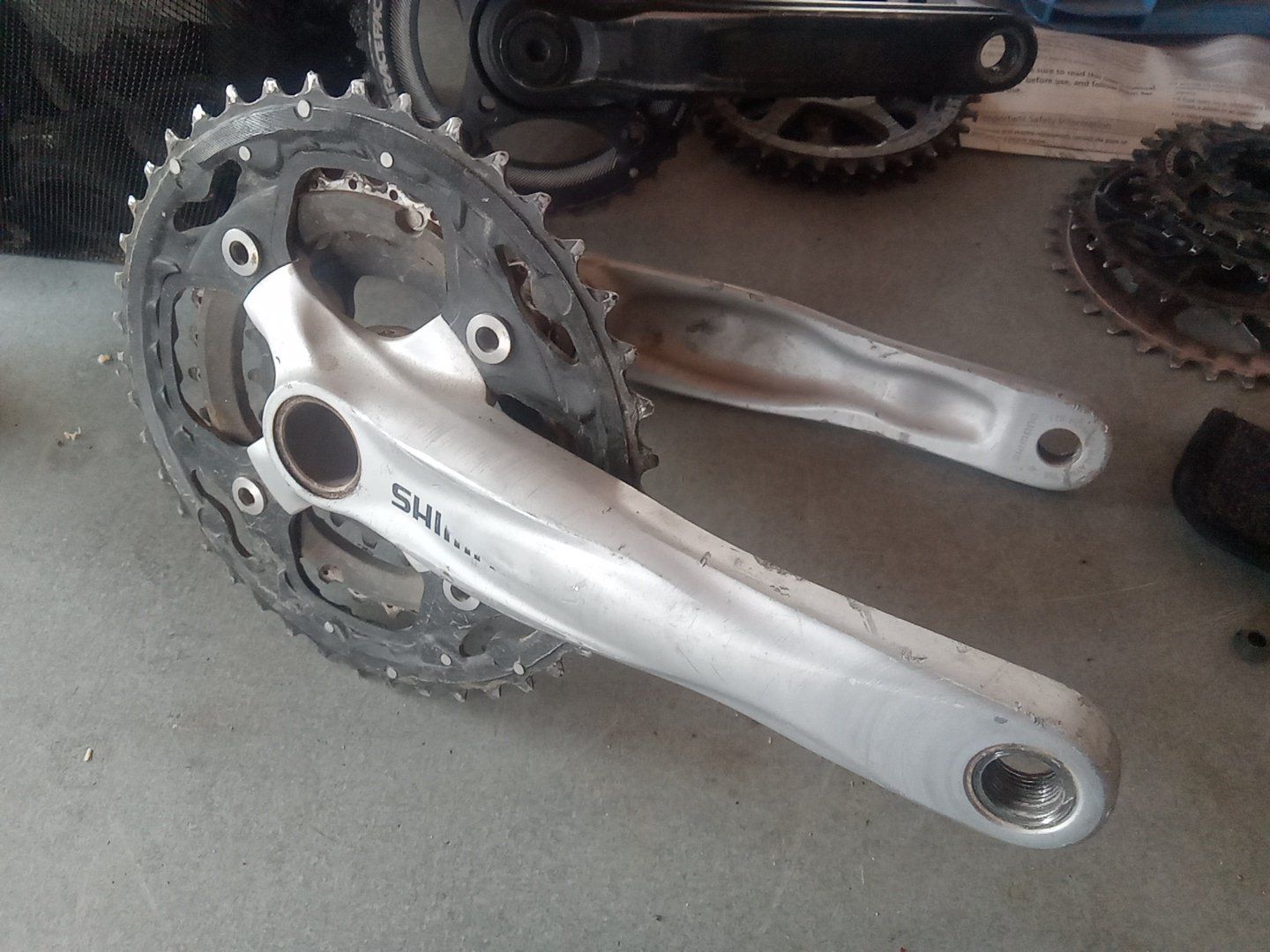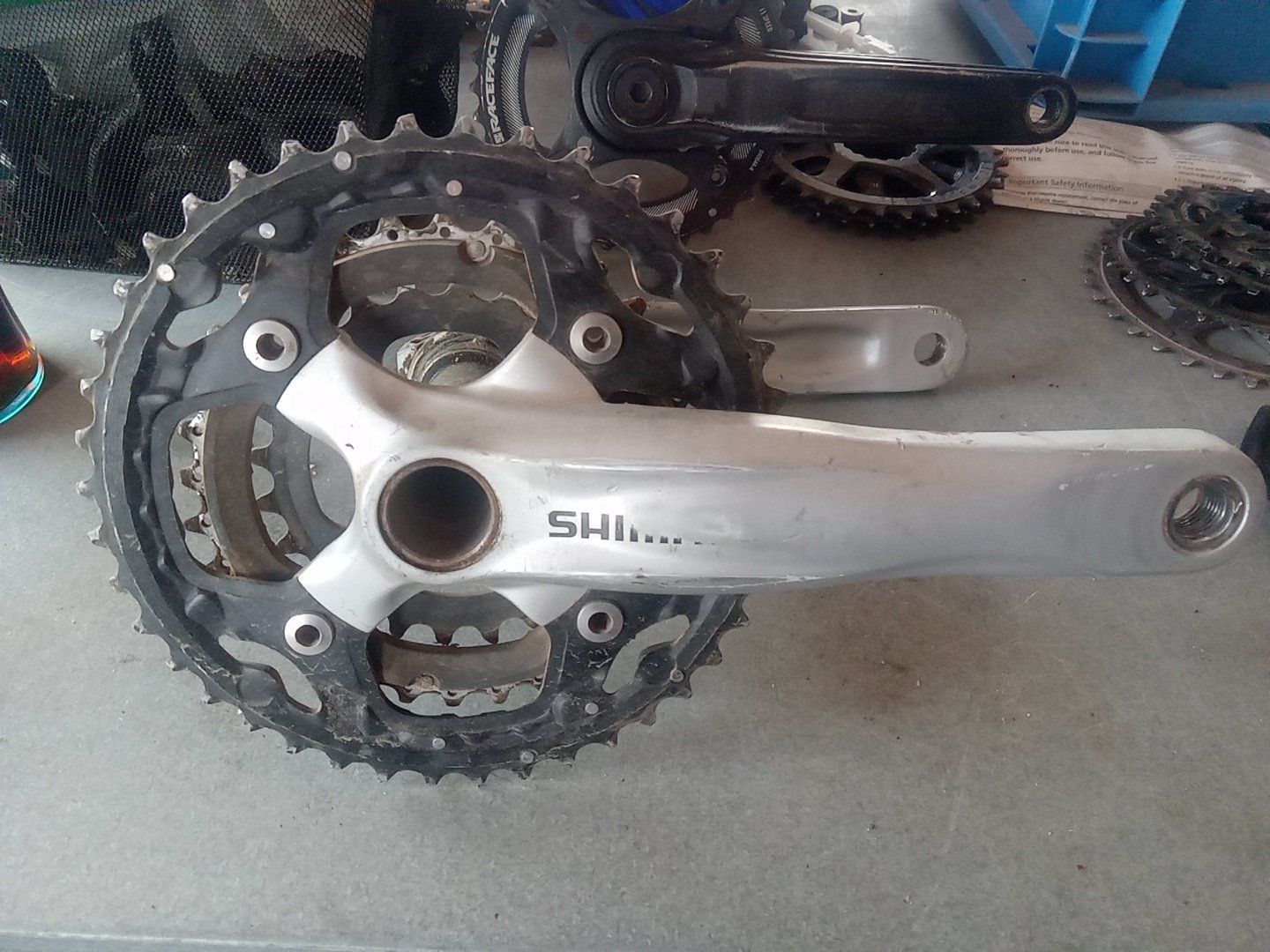 PayPalUsed Shimano Deore 175mm mountain bike crankset. Complete with 3 chainrings and Shimano Bottom Bracket.