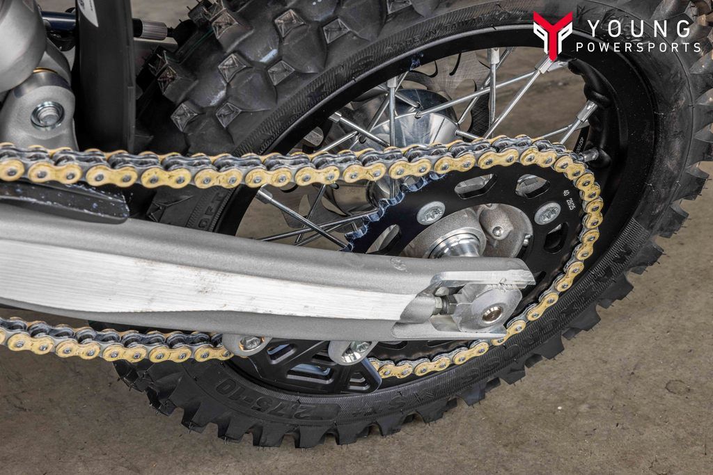 Rolling off the race rig and into the pit lane, the KTM 50 SX uses lightweight, black anodized, aluminum rims just like the full-size KTM SX range. These provide the highest levels of strength and reliability, while MAXXIS MX-ST tires deliver outstanding performance on any terrain, along with exceptional straight-line stability.