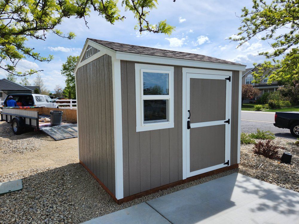 Zelle8x10 A-Frame style shed. My name is John, I am the owner/operator of MR.SHED, your local neighborhood shed builder. I have been expertly building top quality sheds for 7 years. I use only the best materials, 2x4 framing, vertical groove smart siding, pressure-treated wood base, asphalt shingles with felt underlay, exterior grade paint, assembled with all the right fasteners and finishes. Each shed is built on-site at your place in aprox. 2-4 days. I will meet with you in person at your home to present all possible options and give a detailed itemized invoice. All sheds are available in any size up to 200sqft. Message or call for exact pricing per size/features, or schedule a free at-home home consult. Liscensed and Insured. Check us out on Google. Hablo Español.