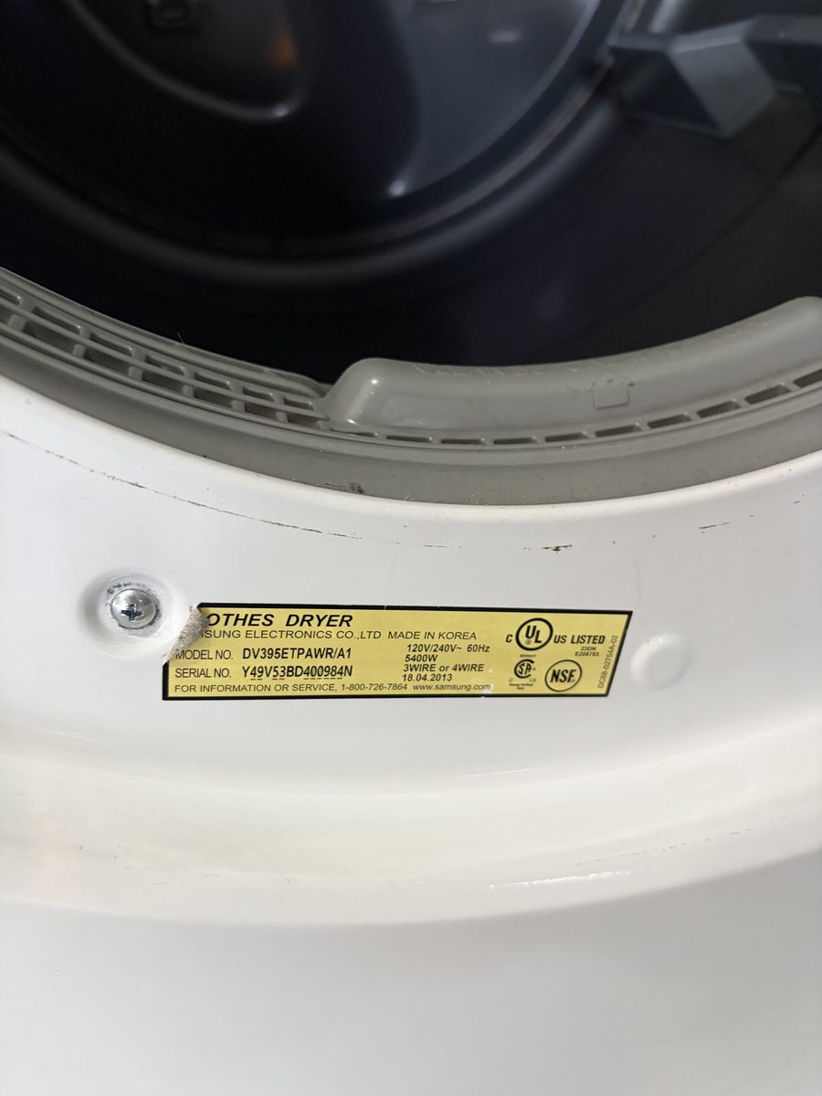VenmoSamsung stackable large capacity dryer in good shape. Heats and dries great without any squeaks or weird noises. It is currently in my garage and you could test before purchase. Model number DV39ETPAWR/A1. Asking $140 obo. Pick-up preferred but delivery could be an option depending on where. Call or text 801-712-3020