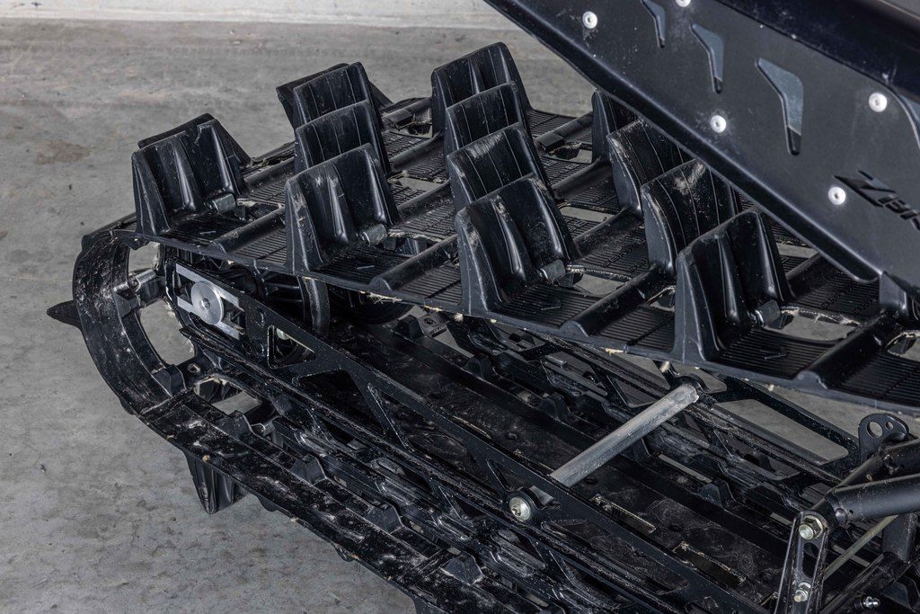 The lightweight, rigid rear suspension design features revised geometry to control pitch. This improves weight transfer, delivering better control and a more compliant ride. The rigid suspension delivers power directly to the snow. Off-trail, riders will notice improved weight transfer while maintaining the approach angle. On-trail, riders will notice a more compliant and comfortable ride. The rear suspension features a rail design that helps lift the rear skid while driving it forward.
