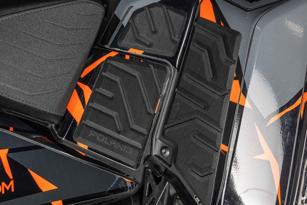 The slashed and tapered tunnel features drastically improved snow clearance, minimizing drag and maximizing control on the most insane slopes. A new centralized, lightweight cooling system, bonded carbonfibre and aluminum-forged components significantly cut the real-world weight of the sled, maintaining the highest level of flickability and delivering class-leading power to weight ratio.