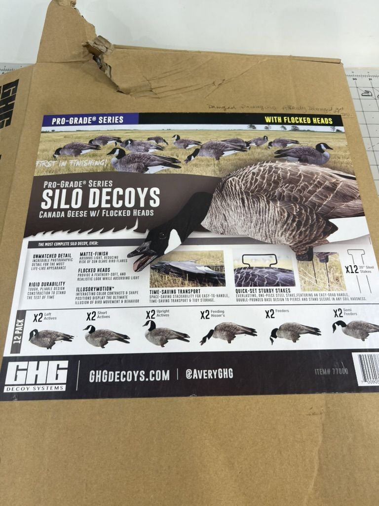 • 12-pack variety of poses • Flocked heads for realism • Matte finish reduces glare • 20" steel stakes included for stability • Lightweight and easy to transport