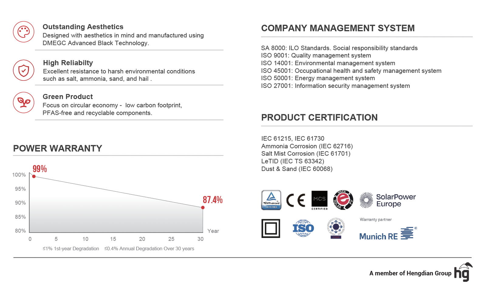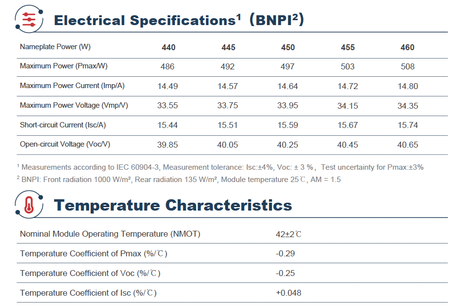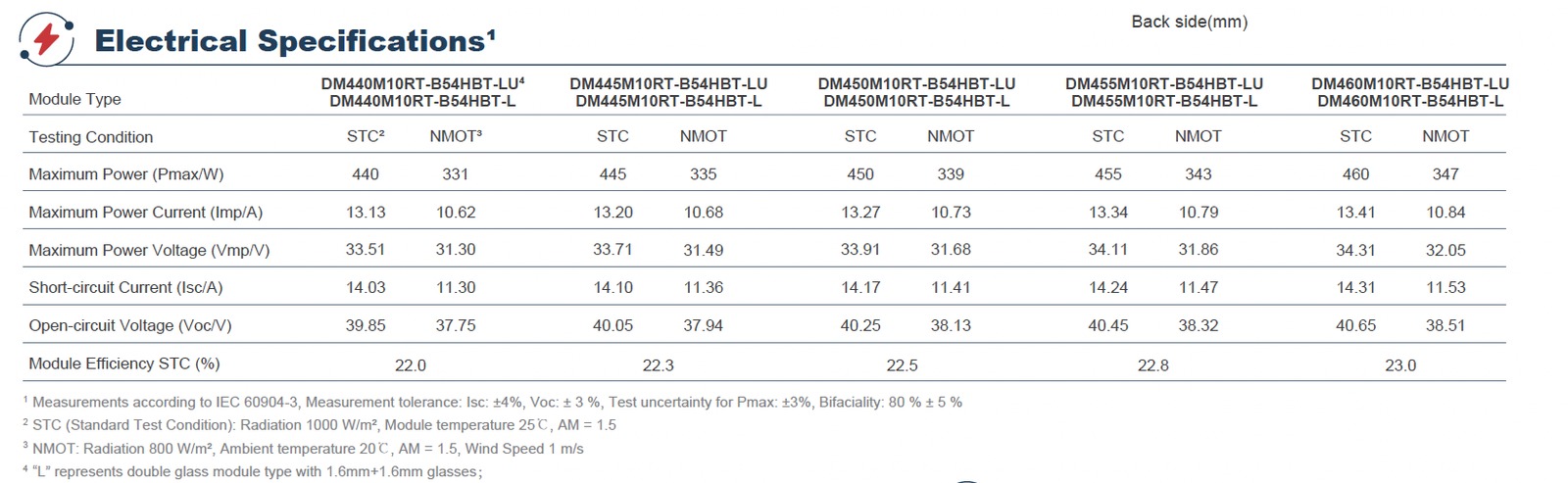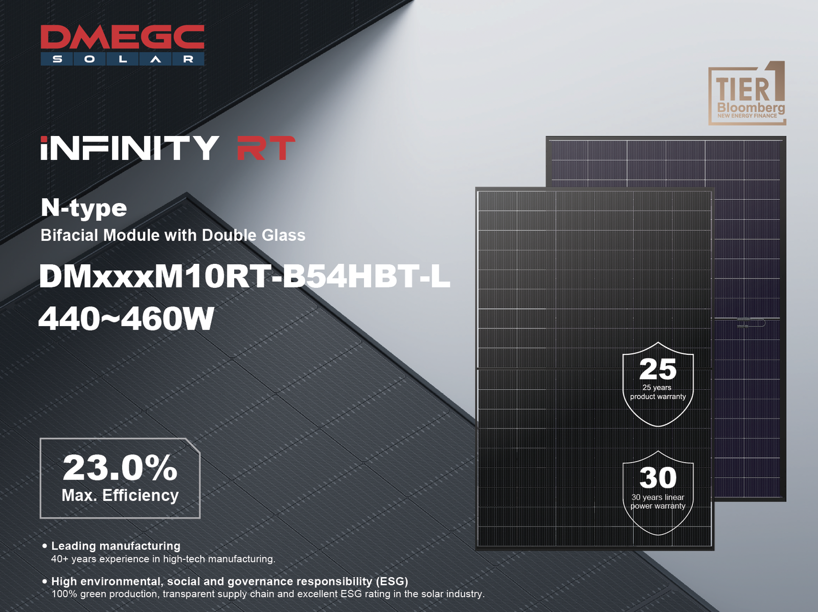 They are nice, brand-new DMEGC 460 W Bifacial Solar Panels - 450M10RT-B54HBT. You get 460 watts from the front side, and 5-30% from the back side. They are great for a house, ground mount, RV, etc.