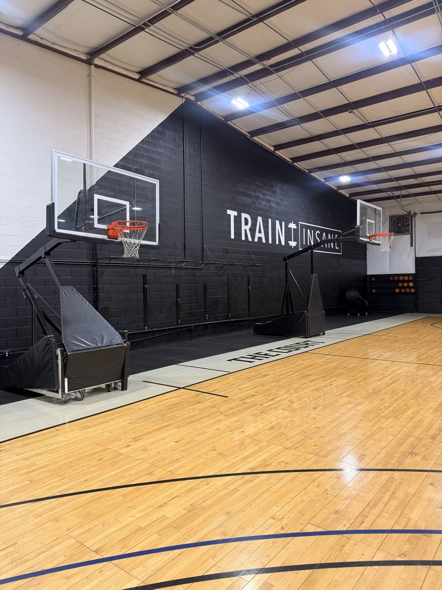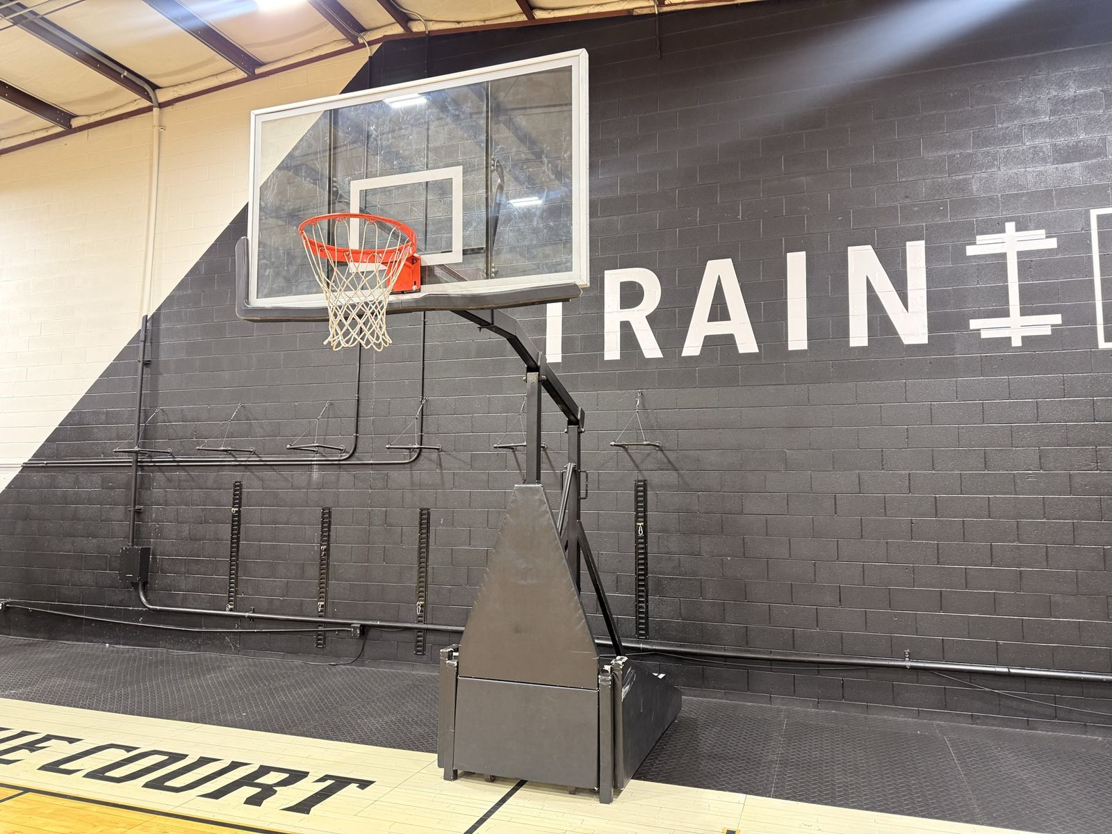 Commercial-grade portable basketball hoop. This is the same style used in training facilities, gyms, and schools—not a residential driveway hoop.