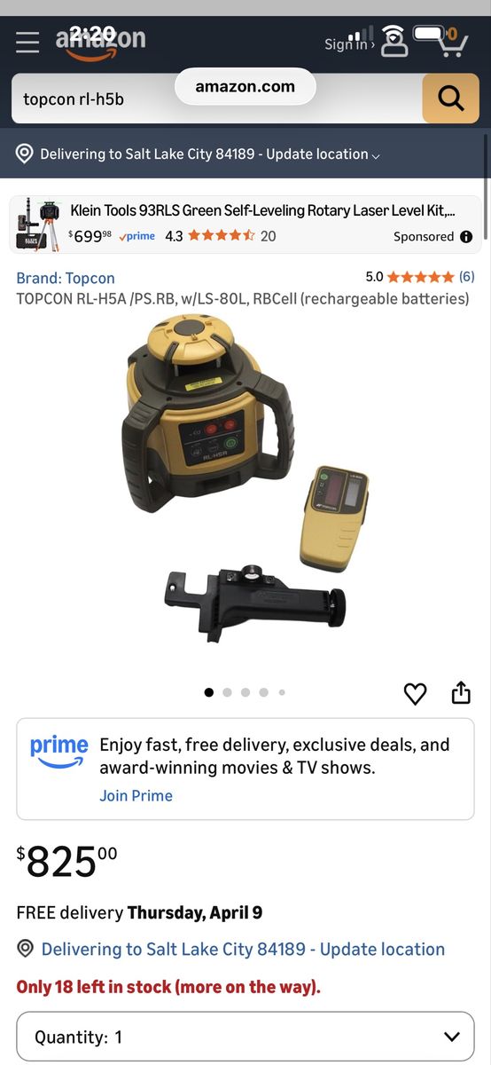Amazing level in amazing condition! Looks and works great! Comes as shown in case with receiver! Pick up and use today! Ready to rock and roll! This exact laser is 825.99 online right now as shown in photos! Don’t pay retail prices! Call Dustin instead at 801-205-3404, I need it gone!!