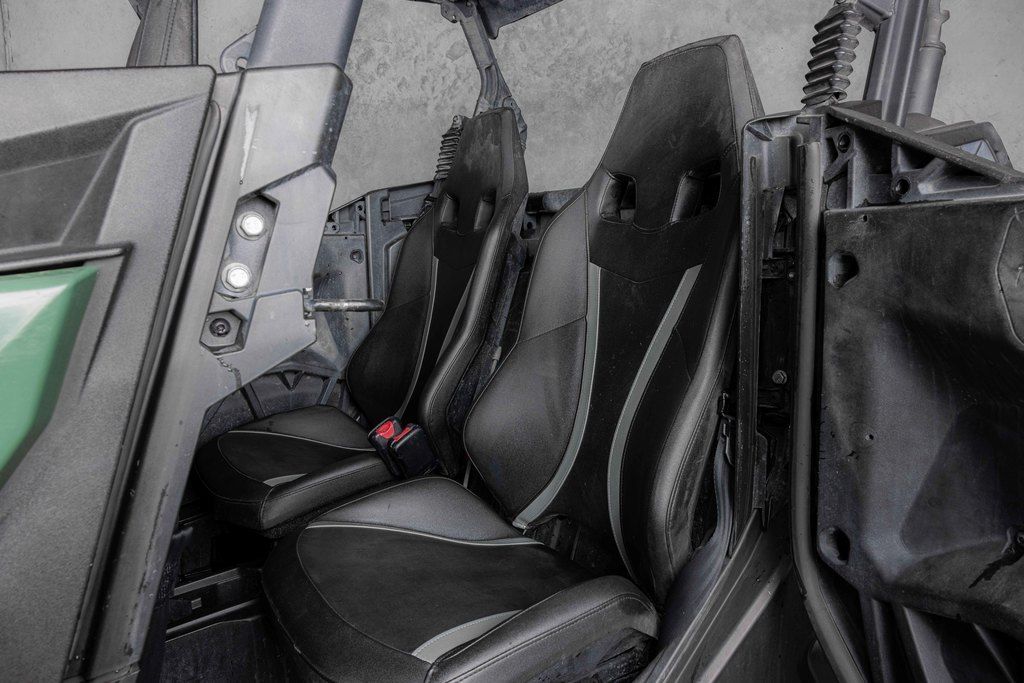 Even when you’re way out there, it’s what’s inside that counts. The new rider-focused interior’s got comfort and functionality that goes above and beyond. Comfortable and secure bucket seats for up to four rugged riders, adjustable driver's seat, wider opening doors, tilt steering wheel, full skid-place, premium half-door, plus a sport roof on the XT and XT-P. Ladies and gentlemen, take your seats.