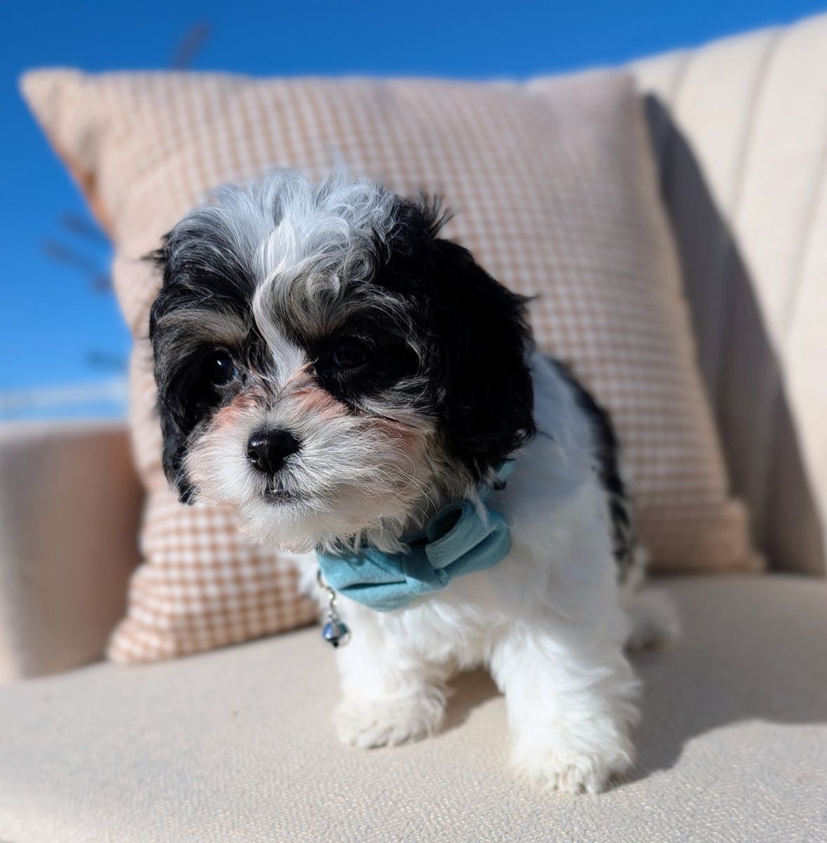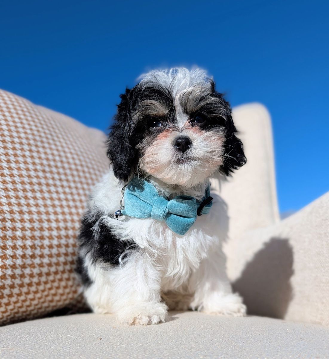 Toy Labradoodle male Born Feb 1st Estimated 5–8 lbs fully grown Soft, wavy low-shedding coat Black tricolor markings Embark DNA tested, individual health panel completed