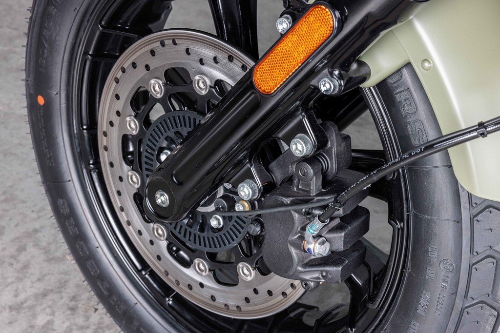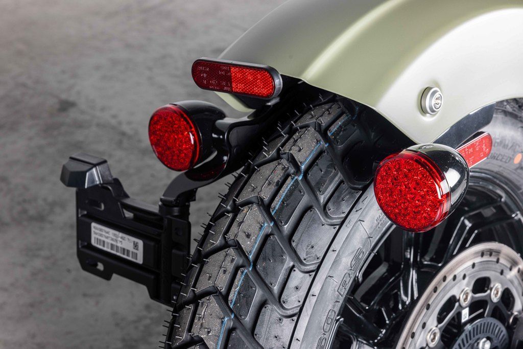 The 16-inch wheels and wide sidewall tires add to the iconic styling of the Scout Bobber, without sacrificing performance, for a smooth ride and distinctive style.