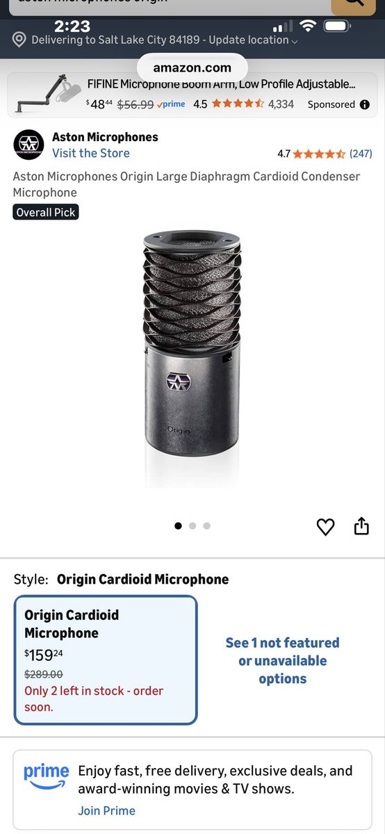 Amazing microphone in amazing condition! Looks and works awesome ! Comes as shown in box with paperwork! Pick up and use today! Ready to rock and roll! This exact microphone is 159.99 on Amazon right now as shown in photos! Don’t pay retail prices! Call Dustin instead at 801-205-3404, I need it gone!!
