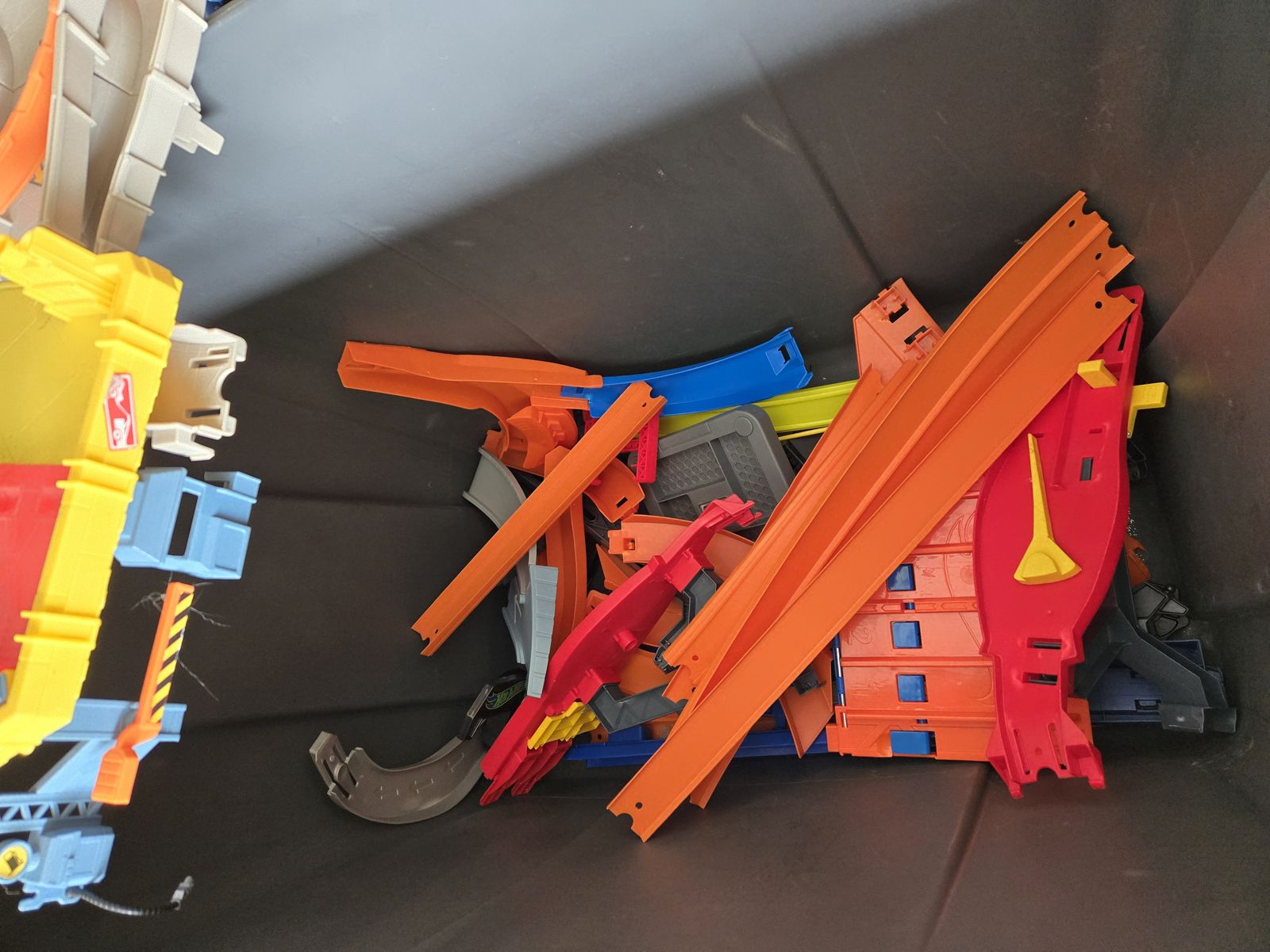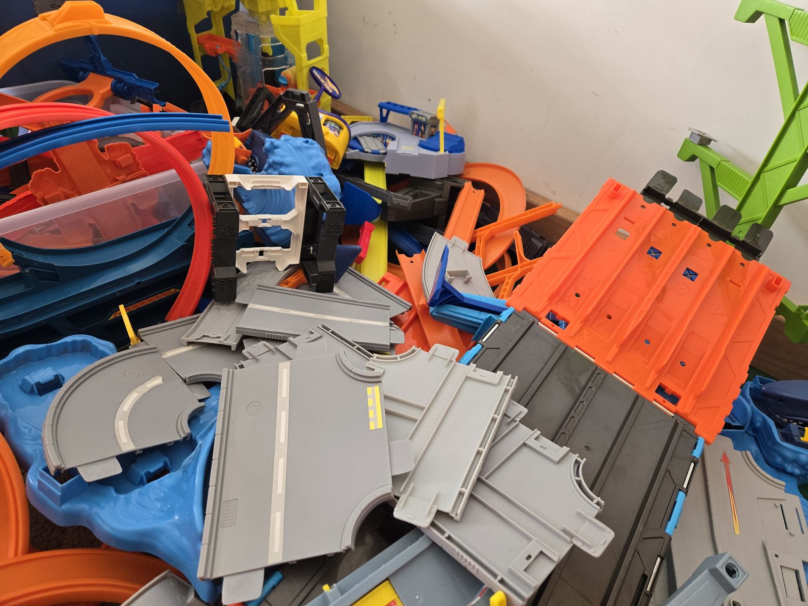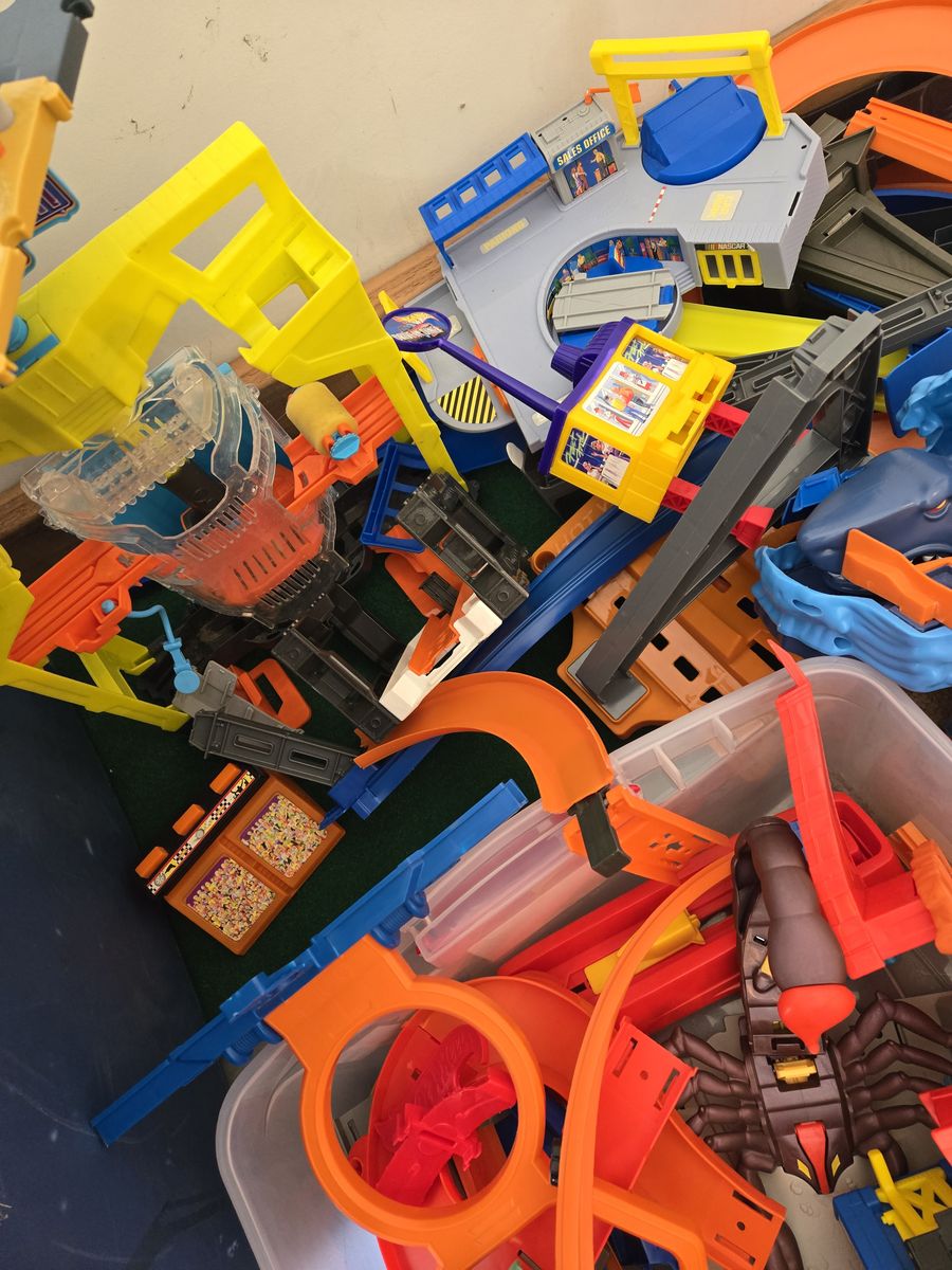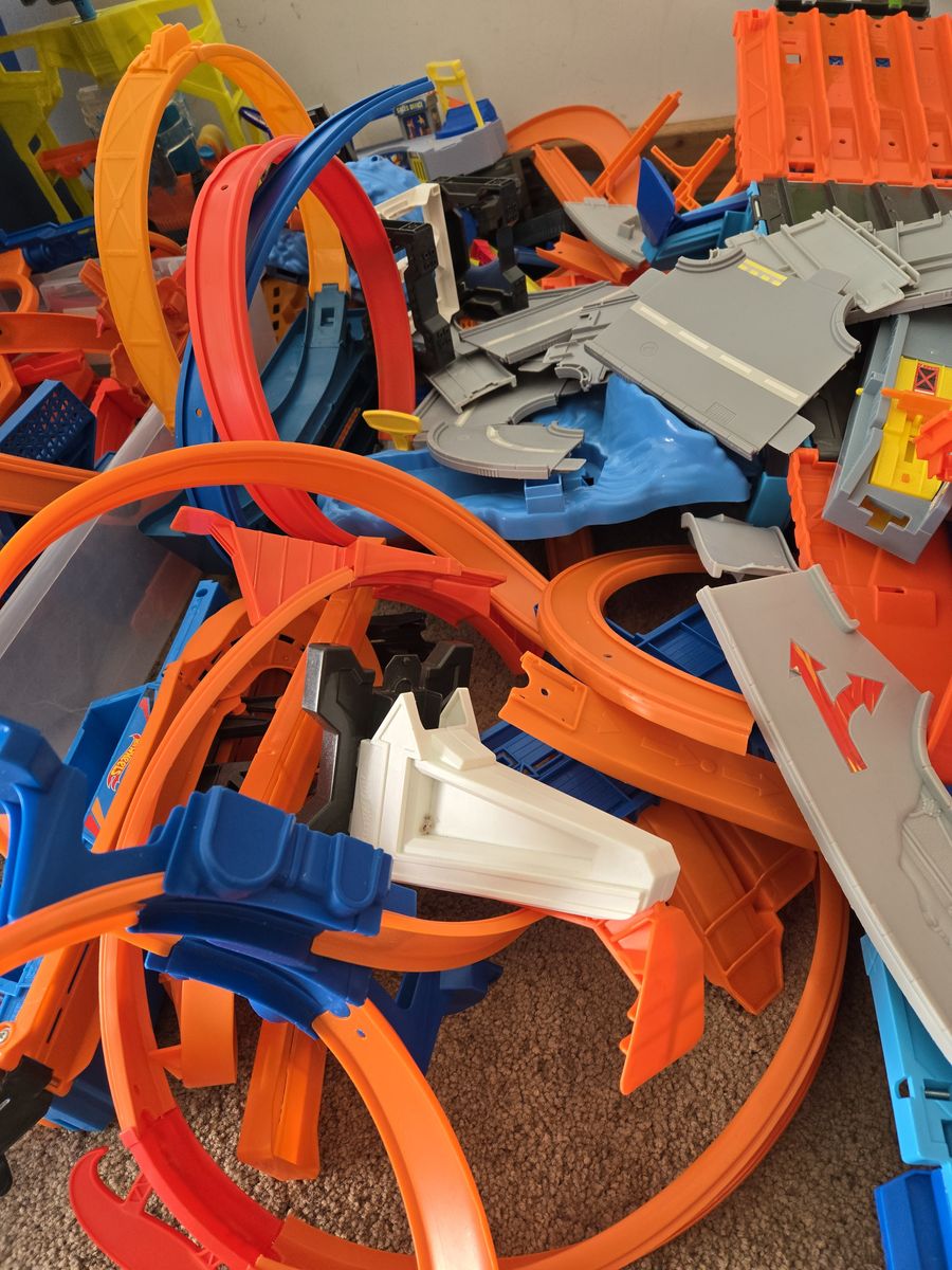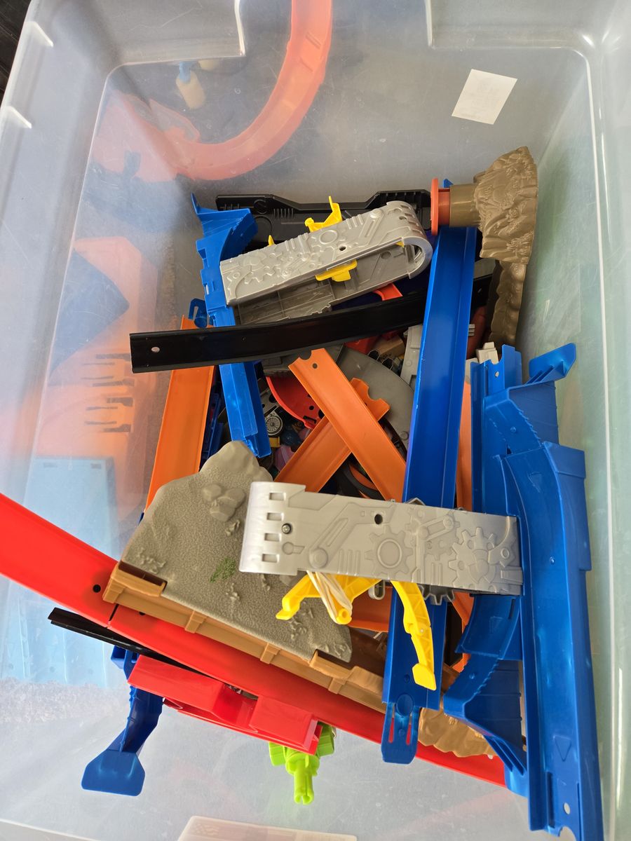 Make an offer. All reasonable offers will be entertained. So many great sets and tougher to find track pieces. A handful of vintage sets as well as the Ultimate Garage, the Stunt Playset, and all the cars shown. The 3 electronic pieces in the last picture weren't shown in the initial picture, but they are included with batteries and are working well. Please see all pictures for exactly what you'll be receiving. I did my best to remove any broken pieces...what you see is pretty clean overall. The 5 totes are included. Cash only.