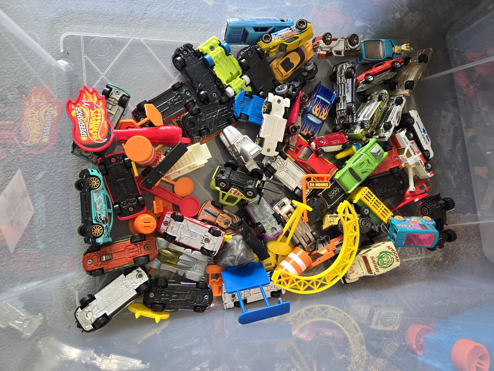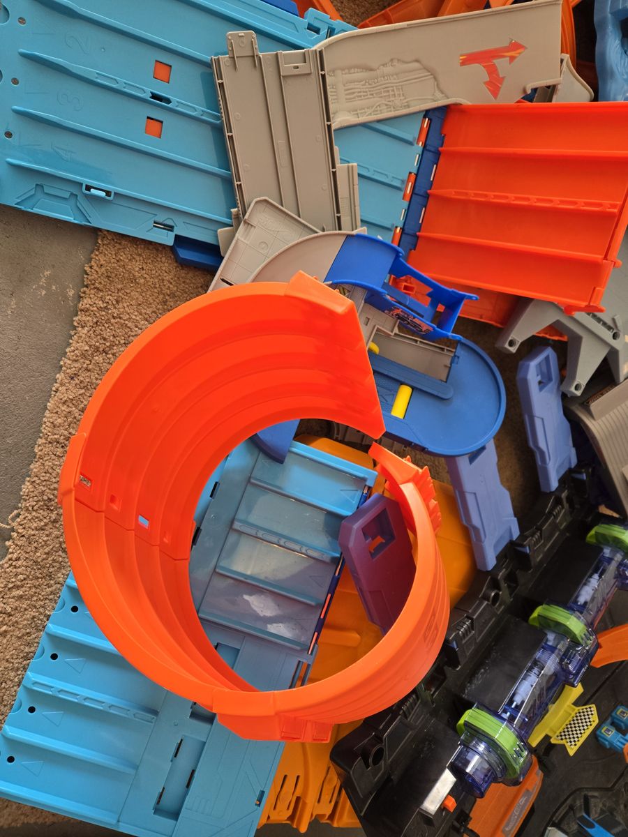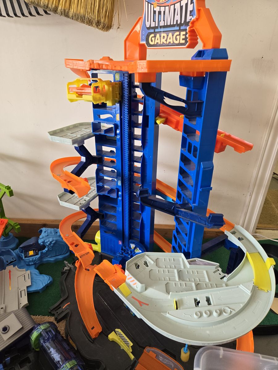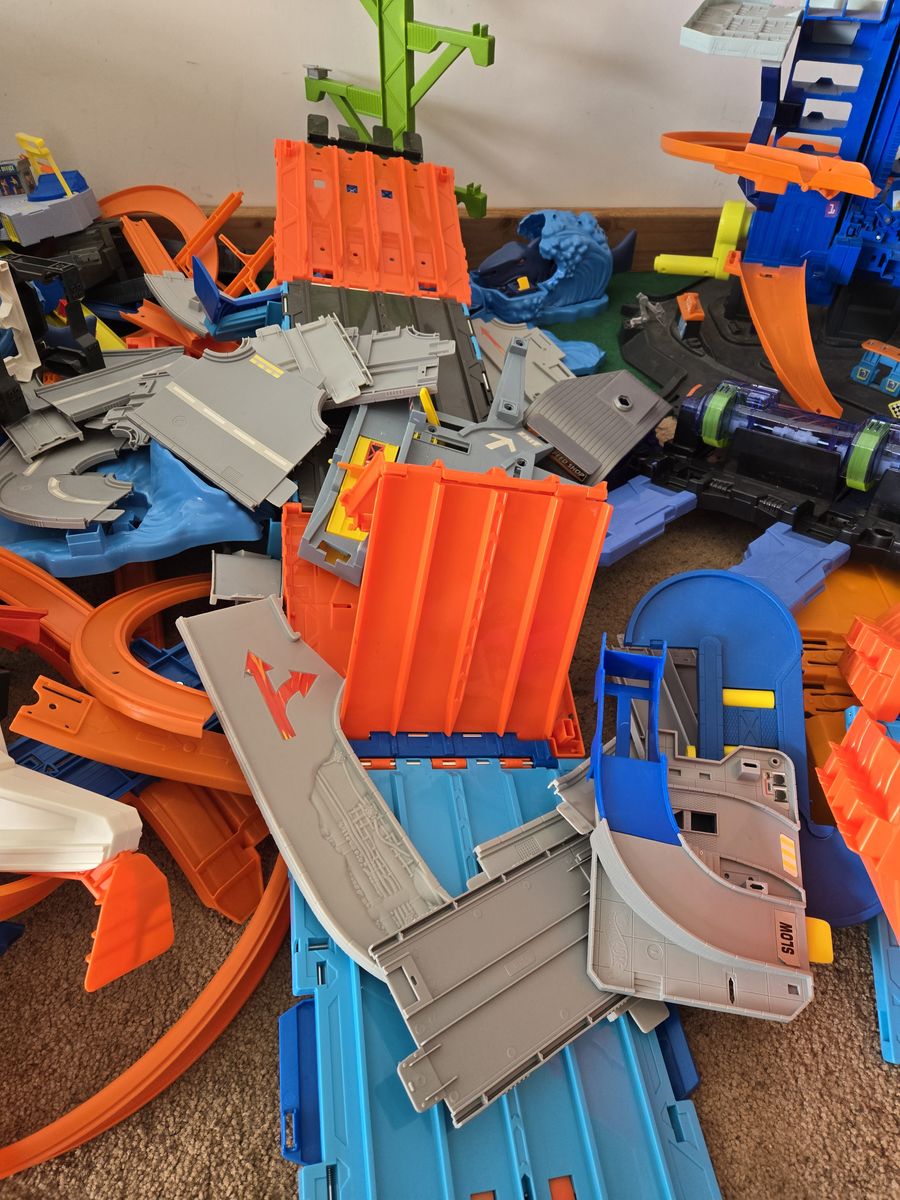 Make an offer. All reasonable offers will be entertained. So many great sets and tougher to find track pieces. A handful of vintage sets as well as the Ultimate Garage, the Stunt Playset, and all the cars shown. The 3 electronic pieces in the last picture weren't shown in the initial picture, but they are included with batteries and are working well. Please see all pictures for exactly what you'll be receiving. I did my best to remove any broken pieces...what you see is pretty clean overall. The 5 totes are included. Cash only.